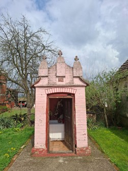 In the area of Bebrina and Dubočac parishes, not far from Slavonski Brod, a large number of shrines and roadside crosses have been preserved that testify to the widespread piety of the local population. Their placement along roads between villages and within villages, near parish churches or branch chapels, also testifies to their other function, that of "saintly guard", which on the Sava, the historical border of the Ottoman and Habsburg Empires and the southern border of the Slavonian Military Frontier, took on the function of a magic circle, or defense against disease, misfortune and other evils. The lecture explores the concept of "saintly guard" in the Military Frontier area, as well as the origin and development of public sculpture typology with reference to commissioners and the import of iconological solutions from German lands.