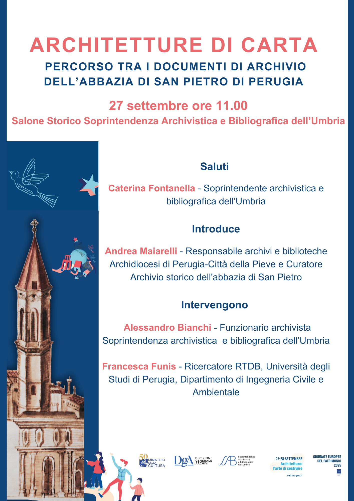 La Soprintendenza archivistica e bibliografica dell’Umbria alle Giornate Europee del Patrimonio 2025 con l’iniziativa: “Architetture di carta - Percorsi tra i documenti di archivio dell’Abbazia di San Pietro di Perugia"