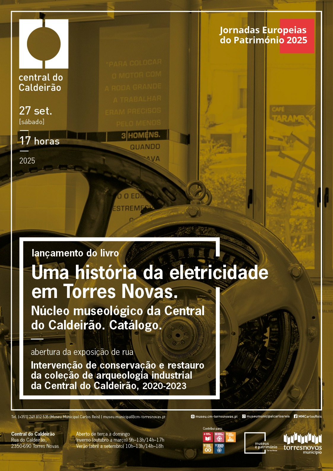 Realiza-se no próximo dia 27 de setembro, sábado, pelas 17h00, na Black Box da Central do Caldeirão, em Torres Novas, o lançamento do livro “Uma história da eletricidade em Torres Novas. Núcleo museológico da Central do Caldeirão. Catálogo”. Nesse mesmo dia, abre a exposição de rua sobre a recuperação das máquinas da central, intitulada “As máquinas da Central. Intervenção de conservação e restauro da coleção de arqueologia industrial da Central do Caldeirão (2020-2023)”, a visitar logo a seguir à sessão de lançamento. Inaugurado em 1 de maio de 2023, o Núcleo Museológico da Central do Caldeirão, em Torres Novas, resulta da recuperação da antiga central hidroelétrica da cidade (edifício e coleção de arquitetura industrial). A conservação da coleção e o projeto arquitetónico do edifício, cujas janelas viradas para o rio Almonda assinalam a importância do rio para o advento da indústria em Torres Novas, são assuntos abordados no catálogo. Esta iniciativa do lançamento do livro integra o programa das Jornadas Europeias do Património de 2025, este ano dedicadas ao Património Arquitetónico, com o lema «Janelas para o passado. Portas para o futuro». E porque o futuro também é construído sobre memórias e objetos, a exposição de longa duração exibe, após um cuidadoso trabalho de recuperação, as máquinas da antiga central, bem como conteúdos referentes aos seus trabalhadores. No catálogo, publicam-se textos de enquadramento histórico, as fotografias das peças que foi possível reunir e recuperar, bem como os extratos de relatos na primeira pessoa de antigos trabalhadores. Os textos são da autoria de João Carlos Lopes, Jorge Custódio, Luís Cruz, Deolinda Folgado, Maria Elvira Marques, Alexon Santos, Natacha de Jesus e Rui Oliveira.