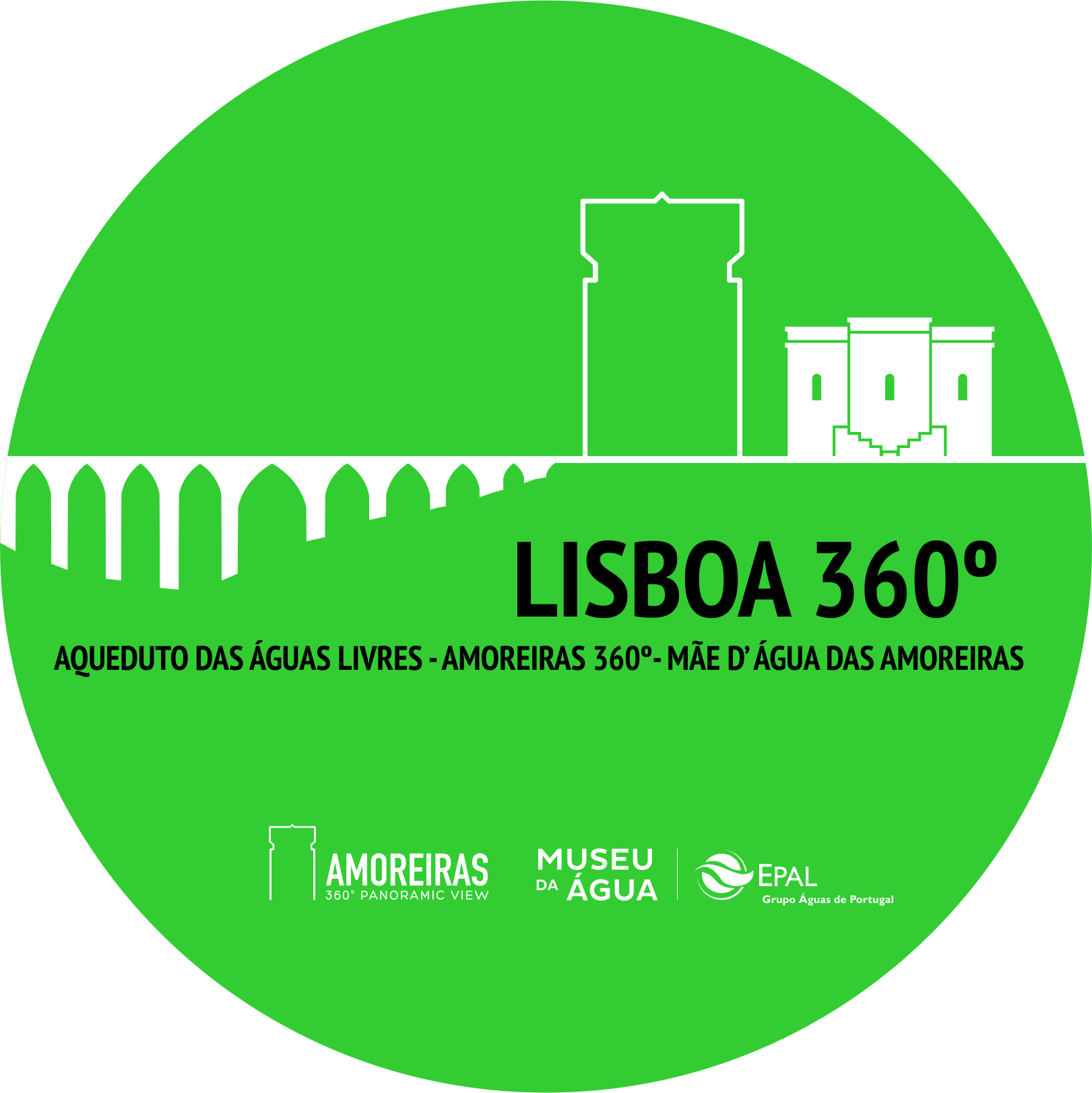 Lisboa 360º 3 terraços, 3 visões. A visita guiada panorâmica, que permite viajar no tempo e conhecer Lisboa a 360º, tem início no Monumento Nacional Aqueduto das Águas Livres, atravessa o Amoreiras 360o Panoramic View, localizado a 174 metros acima do nível do mar, e termina no Terraço do Reservatório da Mãe d’Água das Amoreiras. O percurso pedonal constitui uma oportunidade única para compreender o desenvolvimento urbano da cidade através da perspetiva dos circuitos e da história da Água.