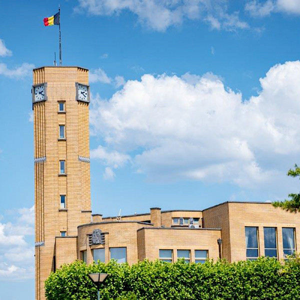 Erected in the heart of the municipality, Woluwe-Saint-Lambert town hall is the work of architect Joseph Diongre, one of the leading exponents of a style somewhere between Art Deco and Modernism, and the creator of numerous landmarks in Brussels. Inaugurated in 1939, the modernist-style building combines small granite and yellow Boom brick. It features a 30 m-high polygonal belfry tower. The interior space is organised around the concourse, with its hushed, monumental ambience, an exceptional gathering place. When you enter the building, you will have an unobstructed view of the counters and the upper floor of the building, thanks to the passageway encircling the rotunda, all naturally lit by the openwork dome. Some rooms have parquet flooring and wood panelling, while the stairwells are adorned with marble. As befits its function, every day it welcomes a large number of constituents seeking documents and information. (CL - 13/04/1995) In collaboration with Arkadia. With the support of the Municipality of Woluwe-Saint-Lambert.