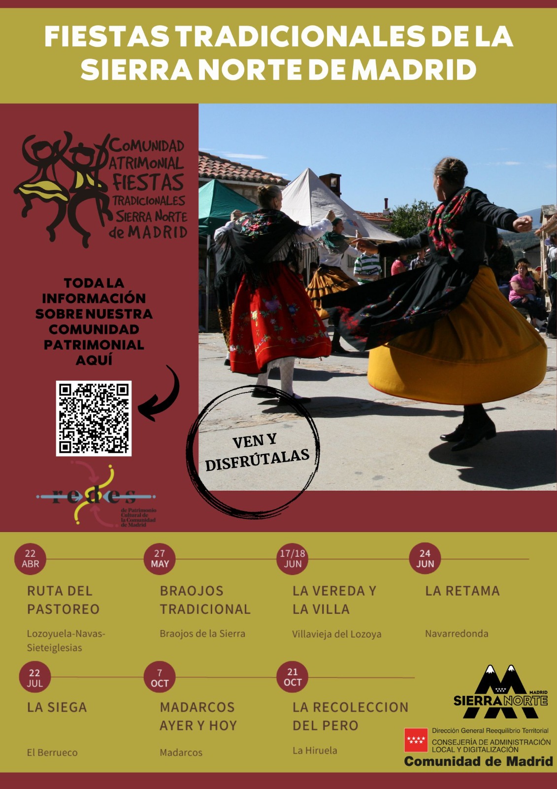 Fiesta con música, artesanía , productos locales y mucha tradición. Madarcos es un pueblo de la Sierra Norte de Madrid. En sus calles, en sus casas, en sus campos y en sus gentes, aún se respira el aire de lo rural, de quienes viven del campo y lo respetan. Por eso, la Mesa de la Experiencia, constituida por las personas más mayores del lugar intenta rescatar del olvido la manera de vivir que dotó a esta Sierra de su paisaje, su dignidad y sus sentimientos y formas de hacer identitarios. La actividad es parte de la Comunidad Patrimonial de Fiestas Tradicionales de la Sierra Norte que es una buena práctica del Programa de Redes de Patrimonio Cultural de la Comunidad de Madrid: https://www.comunidad.madrid/cultura/patrimonio-cultural/fiestas-tradicionales-comunidad-patrimonial-sierra-norte