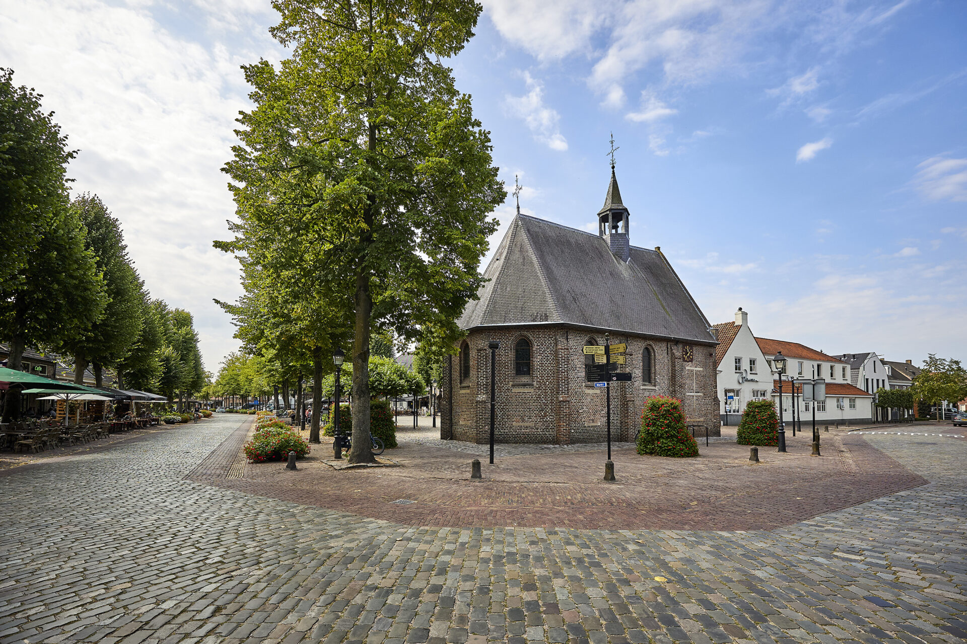 Historische gotische kapel uit 1464. In 1648, als gevolg van de Vrede van Münster, in gebruik genomen als raadhuis. In 1957 schonk het gemeentebestuur het gebouw terug aan de kerk, die de oorspronkelijke functie van kapel herstelde. De kapel werd ingewijd door de bisschop van ’s-Hertogenbosch als Mariakapel ‘Onze Lieve Vrouw van de Kempen. Diverse keren gerestaureerd en verbouwd, o.a. in 1918 en 1957. Het gebouw wordt tegenwoordig Mariakapel genoemd. De historie begint in de Middeleeuwen als rond 1250 de hertog van Brabant Eersel aanwijst als regionaal centrum en net buiten de oude kern (aan ‘De Plaetse’) een houten kapel laat bouwen. In de eeuwen daarna krijgt het gebouw goeddeels zijn huidige vorm in baksteen. In 1464 wordt het een officieel kerkelijk gebedshuis als de bisschop van Luik de kapel toewijdt aan de heilige Maagd Maria, de heilige Catharina, de heilige Antonius Abt en de heilige Nicolaas. Aan heiligen geen gebrek. Desondanks blijft het gebruik beperkt. Want de kapel mag de plaatselijke parochiekerk geen nadeel opleveren, zegt de bisschop. De priester die hij aanstelt mag alleen op zondag missen opdragen. Meteen na de mis gaat de deur op slot, ook om te voorkomen, zo valt op te maken uit de archieven, dat het pand voor handelsdoeleinden wordt gebruikt, of als onderkomen voor varkens en honden. In de Tachtigjarige Oorlog (1568-1648) wordt de situatie er niet beter op. In 1581 plunderen Spaanse troepen het dorp Eersel. En als een halve eeuw later de pest de plaatselijke bevolking sterk vermindert (met ruim een vijfde tot zo’n 1.250 inwoners), is lange tijd geen priester beschikbaar. Na de Vrede van Munster (1648) is het helemaal afgelopen. Dan krijgen de protestanten het hier voor het zeggen en zij leggen aan de uitoefening van het katholieke geloof ernstige beperkingen op. De kapel wordt, net als de parochiekerk, aan de eredienst onttrokken. Er zijn diverse bestemmingen voor het pand, waaronder die van gevangenis en bergplaats van de brandspuit. Maar de langste tijd fungeert het middeleeuwse pand als raadhuis. Dit laatste blijft het tot 1957. Dus tot lang nadat de katholieken zo rond 1800 hun parochiekerken weer terug hebben gekregen. In 1917 zijn er plannen het gebouw te slopen. Monumentenzorg steekt hier een stokje voor en er volgt een restauratie. Er komen ramen in de zijgevels. Daarin worden vlak na de Tweede Wereldoorlog zeven gebrandschilderde ramen aangebracht.