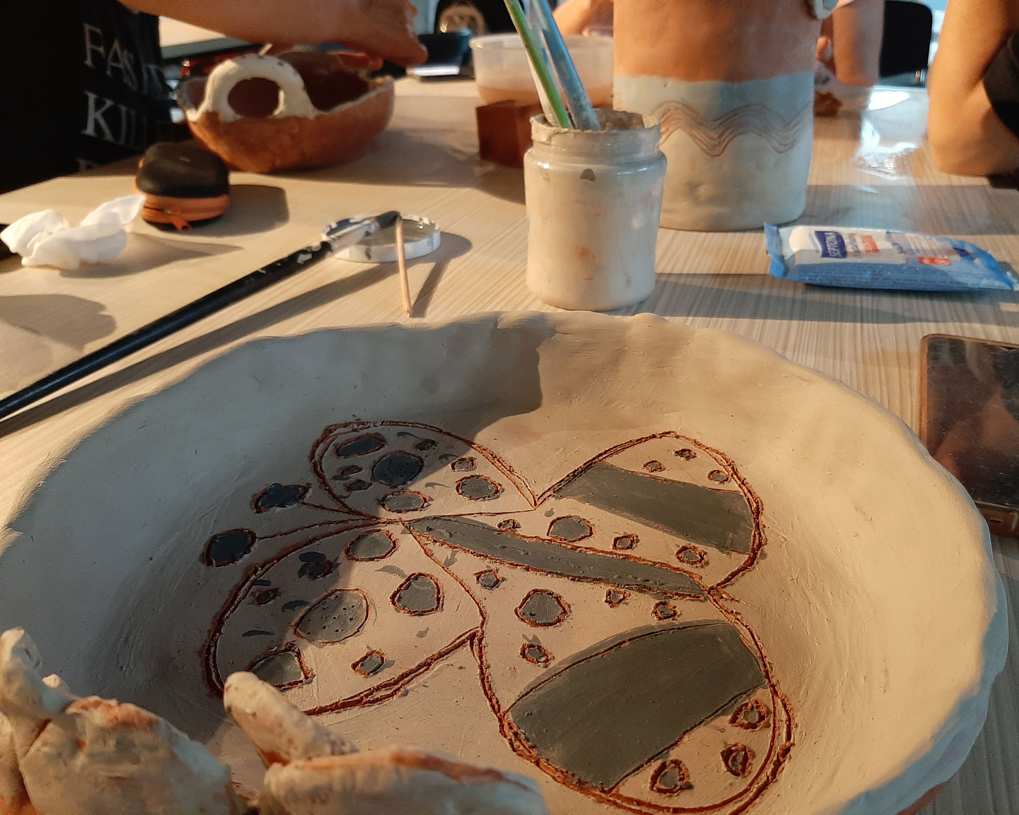 Εργαστήριο πηλοπλαστικής σε συνεργασία με την κεραμίστρια Δήμητρα Σταύρου, η οποία διατηρεί το εργαστήριο-εκθετήριο «Κέραμος και πλίνθοι», στα Ιωάννινα. Αξιοποιώντας στοιχεία της φύσης, όπως το χώμα και το νερό, οι συμμετέχοντες θα γνωρίσουν τις βασικές αρχές της κεραμικής, μίας από τις αρχαιότερες ίσως τέχνες, μέσο καλλιτεχνικής έκφρασης και δημιουργίας αλλά και κάλυψης πρακτικών αναγκών της καθημερινότητας, έως και σήμερα. Υπεύθυνοι εκδήλωσης: Ανθή Αγγέλη, Μαρία Καραμπά.