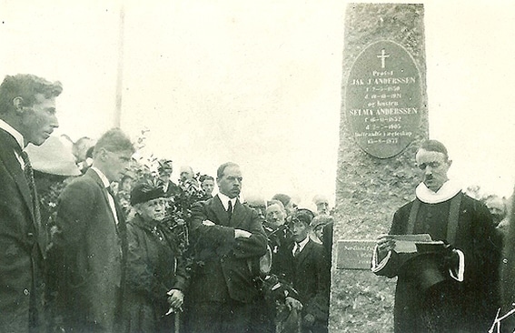 Bautaen over prost Jak. J. Anderssen som står på Evenes kirkegård, ble avduket 30. august 1925 med stor festivitas. Minnebautaen er idag et viktig og godt synlig kulturminne og ble i sin tid satt opp av Nordland fylkeskommune og Evenes kommune. Vi inviterer alle med å se på minnebautaen på kirkegården og deretter går vi ned til Bårstua for videre arrangement. Her blir det mer info pluss kafe. Kanskje får vi se den fine sølvkransen som ble lagt på gravstedet når prosten døde i 1921… Hold av datoen! Detaljert program kommer, På bildet ses bautaen og Sigrid Rørvik Bruun. Hun har i mange år vært med å plante blomster i bedet her.
