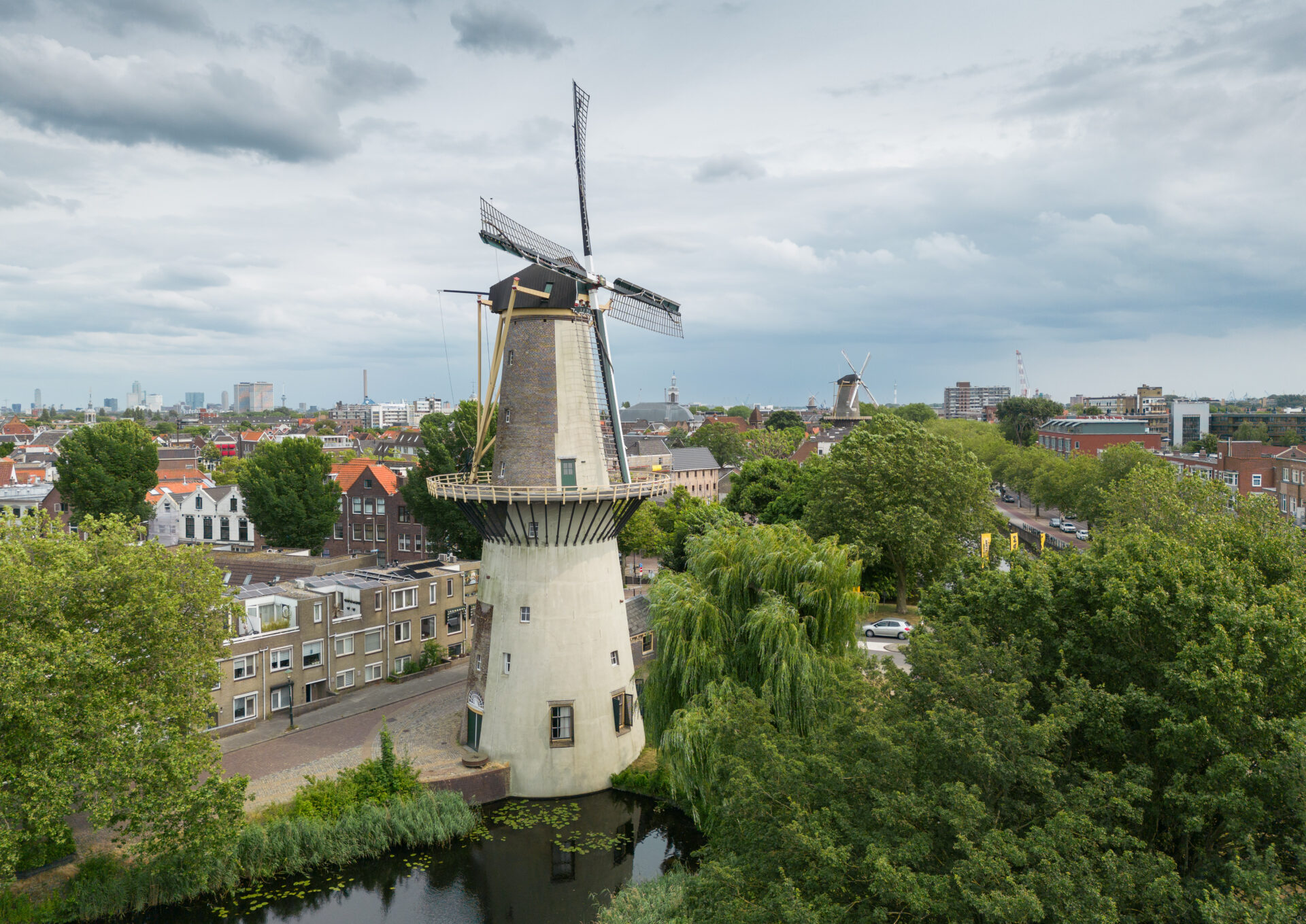 De molen is enkel toegankelijk voor personen ouder dan 18 jaar. Molen De Drie Koornbloemen dateert uit 1770 en is daarmee de oudste nog bestaande brandersmolen van Schiedam. Uniek voor Schiedam is het aan de molen verbonden molenaarshuis. Op de sfeervolle molenzolders is goed te zien dat na de neergang van de jeneverindustrie de brandersmolens werden gebruikt voor allerlei andere toepassingen draaiend op windenergie. Zo beschikt de molen over de restanten van een pelwerk waarmee onder meer rijst werd gepeld.