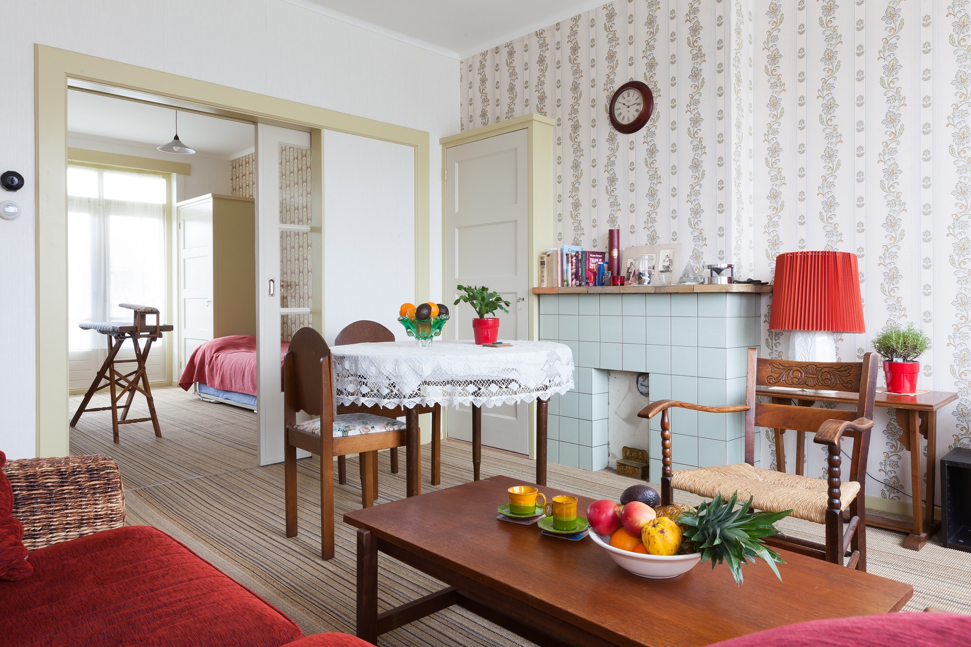 Historie van de museumwoning De museumwoning Johan de Wittlaan is gebouwd in 1950. Een portiekflat was een nieuwe woonvorm met luxe die men in die tijd graag huurde. Het trappenhuis heeft een boodschappenliftje, een moderniteit van die tijd. In de gang van de woning zijn wanden met beton-emaille en granitovloeren te zien. De keuken is voorzien van een nog origineel keukenblok, bruynzeeldeuren, en een granito wasbak. Op het balkon vindt u een kolenhok, typisch voor de jaren ’50. Er is een aparte kamer om de was te drogen, een luxe die destijds zeer gewaardeerd werd. Een originele schouw en nog veel meer details maken het beeld van die tijd compleet. Volkshuisvesting heeft deze woning met hart voor de jaren ’50 hersteld. Een kijkje in het verleden De bewoner vertelt u graag alles over het leven van toen. Meer informatie op www.museumwoningenarnhem.nl