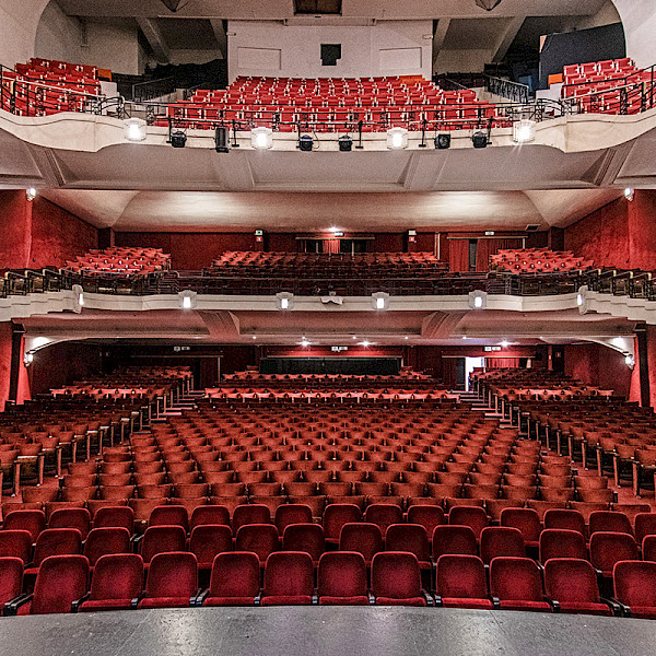 Designed by Franz Hemelsoet, the Théâtre Saint-Michel opened in 1932. While the exterior is in the same Rhenish neo-Romanesque style as all the buildings at Collège Saint-Michel, once you step through the door, you are in for a surprise. The architect created a world of Art Deco style. A monumental staircase takes pride of place in a vast foyer that can seat nearly 700 people. A half-moon staircase leads to a straight flight of stairs, which then divides into two, all adorned by wrought-iron railings. Similarly, the vast hall, one of the largest in the capital, adopts the purest Art Deco style, which is evident in the decor, from the ironwork on the balconies to the mouldings and geometric light fixtures. Thanks to stalls and two upper balconies, all spectators (1,800 could be seated at the time) face the stage, in what is known as the "Wagnerian" style. This art venue was managed by Collège Saint-Michel until 1993. After several private managers, a new volunteer team has been running the theatre since 2024, with financial support from the Compagnie de Jésus and others. Self-guided tours of the NOVUM (theatre foyer and stalls) on Saturday from 10.00 am to 2.00 pm and Sunday from 10.00 am to 6.00 pm. No access to backstage or balconies. Guided tours of the entire building, including backstage, by reservation, on Saturday and Sunday morning by the NOVUM team, and on Sunday afternoon by Arkadia (FR) and Klare Lijn (NL/EN).