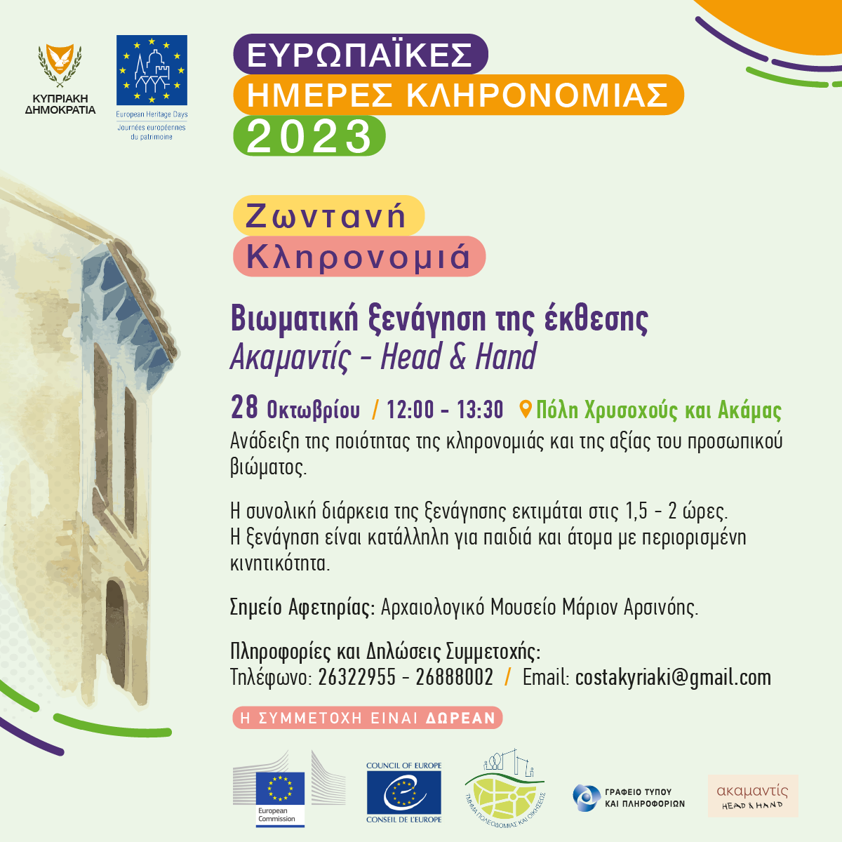 The guided tour will commence from the Archaeological Museum of Marion-Arsinoe and continue with an exploration of the museum area. During the tour, participants will learn about the connection between the exhibits and the history of the region. Afterwards, participants will proceed to the Anassa Hotel with their own vehicles, where a guided tour of the Akamantis Head & Hand exhibition will take place. The event will conclude at the Anassa Hotel.