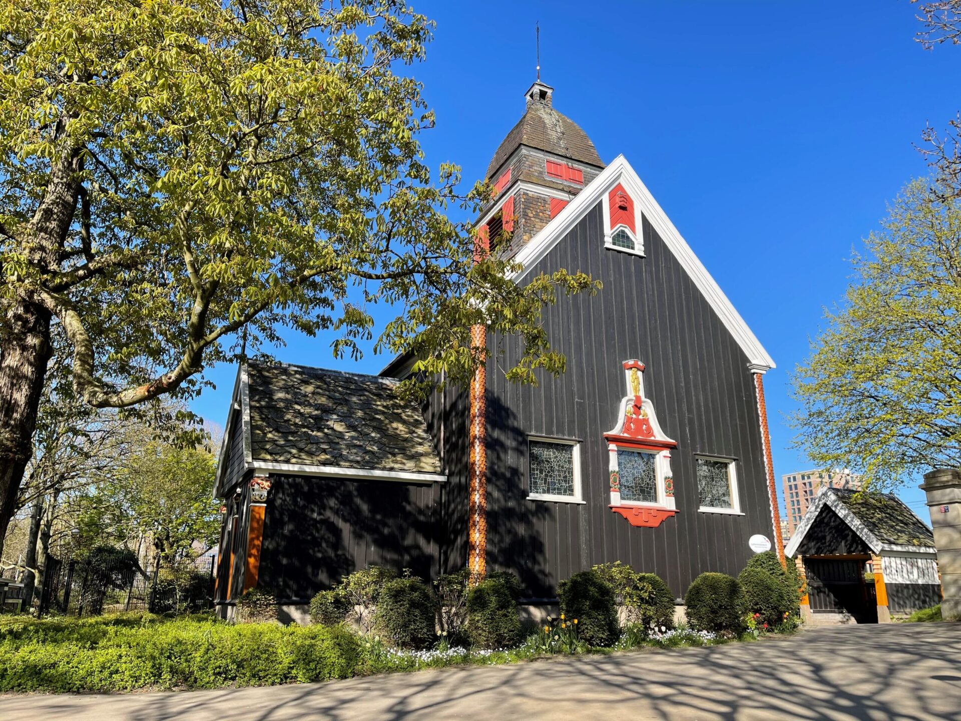 Het Noorse Kultuurhuis, voorheen de Noorse Zeemanskerk in Rotterdam (den Norske Sjømannskirken i Rotterdam), werd in 1914 gebouwd. Men vond het toen belangrijk om de zeemannen een aangename ontmoetingsplek te geven die een vervanging voor thuis kon zijn. Een uitgesproken doel daarbij was om de vaak jonge mannen uit de “verkeerde buurten” te houden. Het ontwerp van het kerkje is gebaseerd op de Noorse staafkerken uit de 13 de eeuw. De pastorie en leeszaal zijn geïnspireerd door Noorse herenboerderijen uit een even ver verleden. Het geheel is representatief voor de Nationalistische Romantische beweging in de Noorse architectuur die vanaf circa 1900 populair was. Zodra je hier binnenstapt, kan je je in een Noorse berghut wanen, juist omdat deze bouwstijl een aantal karakteristieke gebouwen in Noorwegen kentekent en een belangrijke rol heeft gespeeld in de ontwikkeling van de Noorse nationale identiteit. Bij de bouw ontstond er discussie over de ligging van de kerk. In de verzuilde samenleving van die tijd vonden vooral de socialisten het erg jammer dat een stuk van de weinige grond die voor de jeugd beschikbaar was om te spelen, voor de bouw van een kerk zou worden opgegeven. Ook waren ze bezorgd dat de aanwezigheid van een kerk het spel op zondag zou belemmeren. Pas na burgemeester Zimmermanns betoog in de gemeenteraad werd de pacht vastgelegd. Als blijk van dankbaarheid is Zimmermanns portret terug te vinden in de afbeelding van de apostel Matthëus boven de orgelgalerij. In 1937 werd de kerk uiteindelijk toch verplaatst. Dit kwam door de aanleg van de Maastunnel. De verplaatsing op rollers was nogal spectaculair. Het gebouw werd in drie delen uit elkaar gehaald, 200m opzij geschoven en weer in elkaar gezet. Daar bleef het gebouw een aantal jaar ongeschonden staan, maar in 1941 raakte het ernstig beschadigd door een brandbom. Al na een jaar was het in vrijwel originele staat herbouwd.
