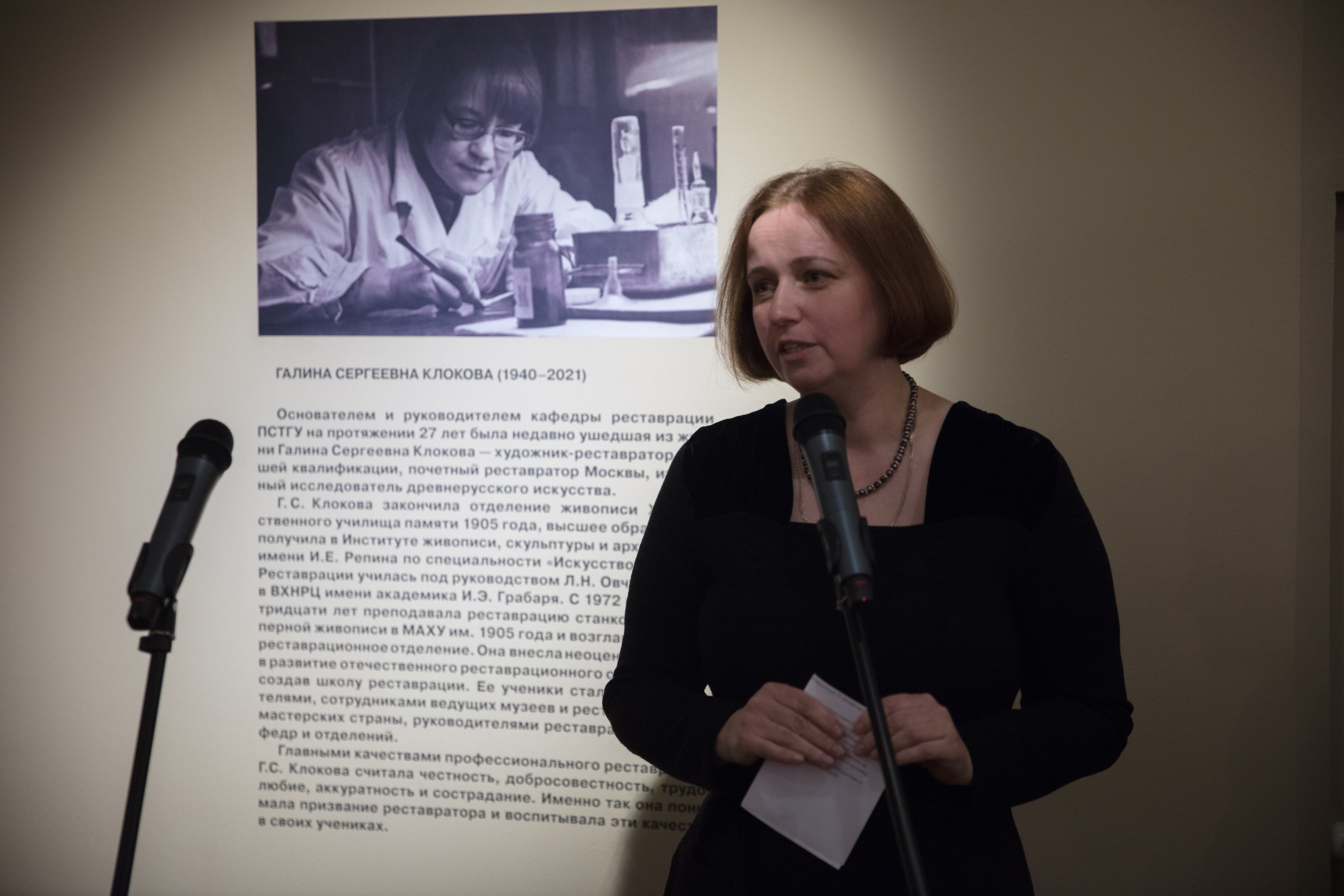 Кафедра реставрации ПСТГУ была основана Галиной Сергеевной Клоковой (1940–2021) – художником-реставратором высшей категории, почетным реставратором Москвы, известным исследователем древнерусской живописи. Она внесла неоценимый вклад в создание системы отечественного реставрационного образования. Кафедрой реставрации ПСТГУ она руководила на протяжении 27 лет, а до этого 31 год преподавала и руководила реставрационным отделением в МАХУ (МХУ памяти 1905 года). Несколько поколений ныне работающих реставраторов - ее ученики. В 2021 году Галины Сергеевны не стало, и эта выставка посвящена не только осмыслению итогов многолетнего сотрудничества музея и университета, но и ее памяти.