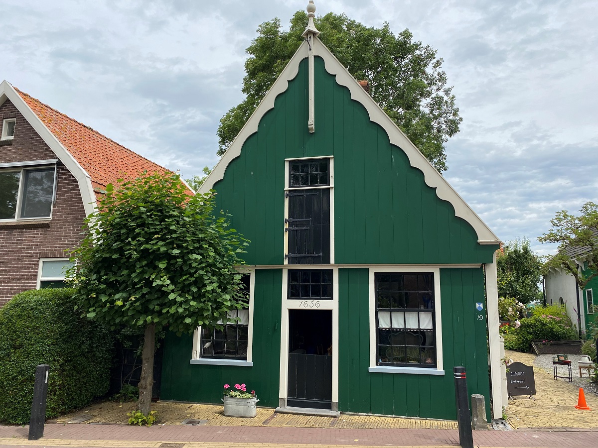 Werp een blik naar binnen bij het oudste huis van Jisp uit 1656. U kunt binnenkijken vanachter de half geopende deur. Achter de muur bij de houtkachel is de originele tegelschouw te zien met daarop Bijbelse voorstellingen. De bewoonster van het huis heeft alles zo veel mogelijk in oude staat gelaten. Nel vertelt graag over haar familiegeschiedenis en de historie van dit bijzondere, groene huis. Achter het huis was vroeger een kleine theetuin. Nu is er een curiosa-winkeltje, waar u heerlijk kunt rondsnuffelen. Neem een kijkje bij het servies, glaswerk, de sieraden of handgemaakte sokken. Let op: het huisje zelf is dus niet te betreden, maar u kunt binnenspieken. U bent welkom in de tuin en het winkeltje op het erf.