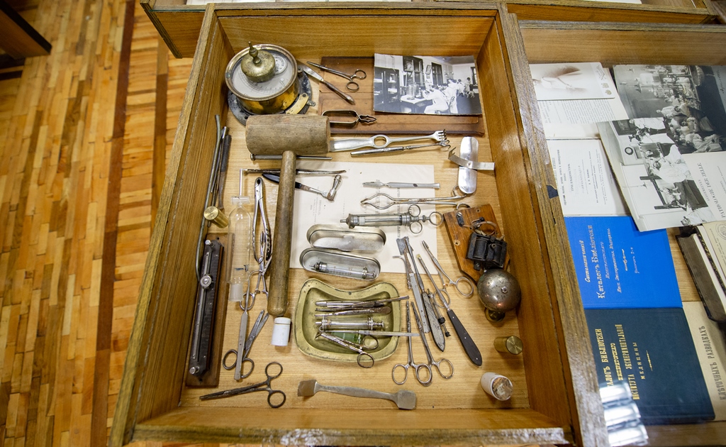 Отдельного внимания заслуживает библиотека, вход в которую украшает яркий майоликовый портал. В фонде хранится множество редких и очень ценных изданий - поступившие как из личной библиотеки основателя, так и книги из частных коллекций, подаренные институту. В частности, афоризмы и медицинские труды Гиппократа 1641 года издания, подлинная диссертация И. Павлова с его автографом и прижизненное издание «Критики чистого разума» И. Канта.