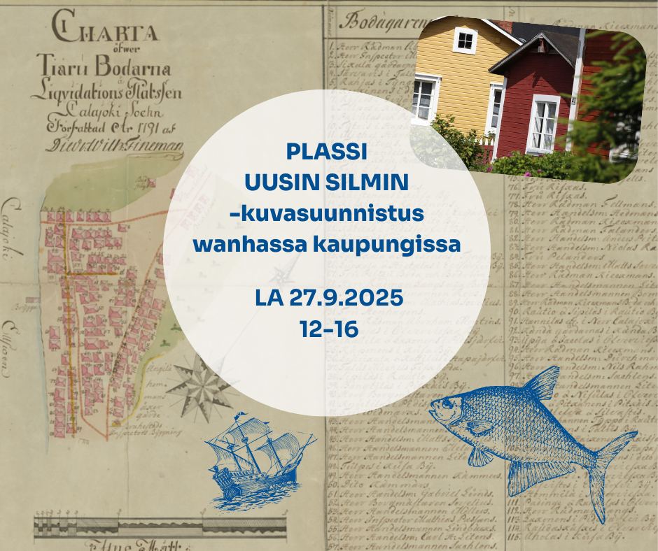 Tervetuloa tutustumaan Kalajoen wanhaan kaupunkiin, Plassiin, uusin silmin kuvasuunnistuksen kautta! Lauantai 27.9.2025 klo 12–16 Santaholmantie 2 (Plassin kyläyhdistys) Kuka tunnettu henkilö vieraili Plassilla 1900-luvun alussa valokuvaamassa paikallista elämänmenoa? Tätä arvoitusta ratkotaan Plassin jännittävässä kuvasuunnistuksessa, jossa selvitetään kymmenen historiallisen ja arkkitehtonisen kohteen sijaintia valokuvien avulla. Kartanlukutaitoa ei siis tarvita – tärkeimpiä ovat tarkkaavaiset silmät ja nopeat hoksottimet! Tapahtumassa ohjeistetaan myös Wiki Loves Monuments -valokuvauskilpailuun osallistumisesta. Ota oma kamerasi mukaan, valokuvaa Plassin historiallisia kohteita ja voit voittaa huikeita palkintoja. Tapahtuman kotipesänä, sekä suunnistuksen alku- ja päätepisteenä, toimii Plassin kyläyhdistyksen kylätalo (Santaholmantie 2). Kylätalolla on osallistujille tarjolla myös lämmintä juotavaa sekä pienet osallistumispalkinnot. Tarkemmat tapahtumatiedot julkaistaan kaupungin tapahtumakalenterissa lähempänä ajankohtaa. Voi tutustua Plassin historiaan ja kulttuurikohteisiin jo etukäteen kaupunkiopas Atlassa (atla.fi): https://atla.fi/fi/kalajoki/kartta/kokoelma/plassin-historiareitti#14.21/64.26491/23.9425 Plassin alue on vanhaa kauppa- ja markkinapaikkaa, ”marknadsplats”, josta juontuu nimitys Plassi. Alue on pääosin vanhan puutaloasutuksen muodostama kyläkeskittymä, jonka vanhimmat rakennukset ovat 1700-luvulta. Vanha kylärakenne on säilynyt hyvin. Tapahtumaan voi osallistua suomeksi ja englanniksi. Sopii kaikenikäisille. Vapaa pääsy! Tervetuloa – Welcome!