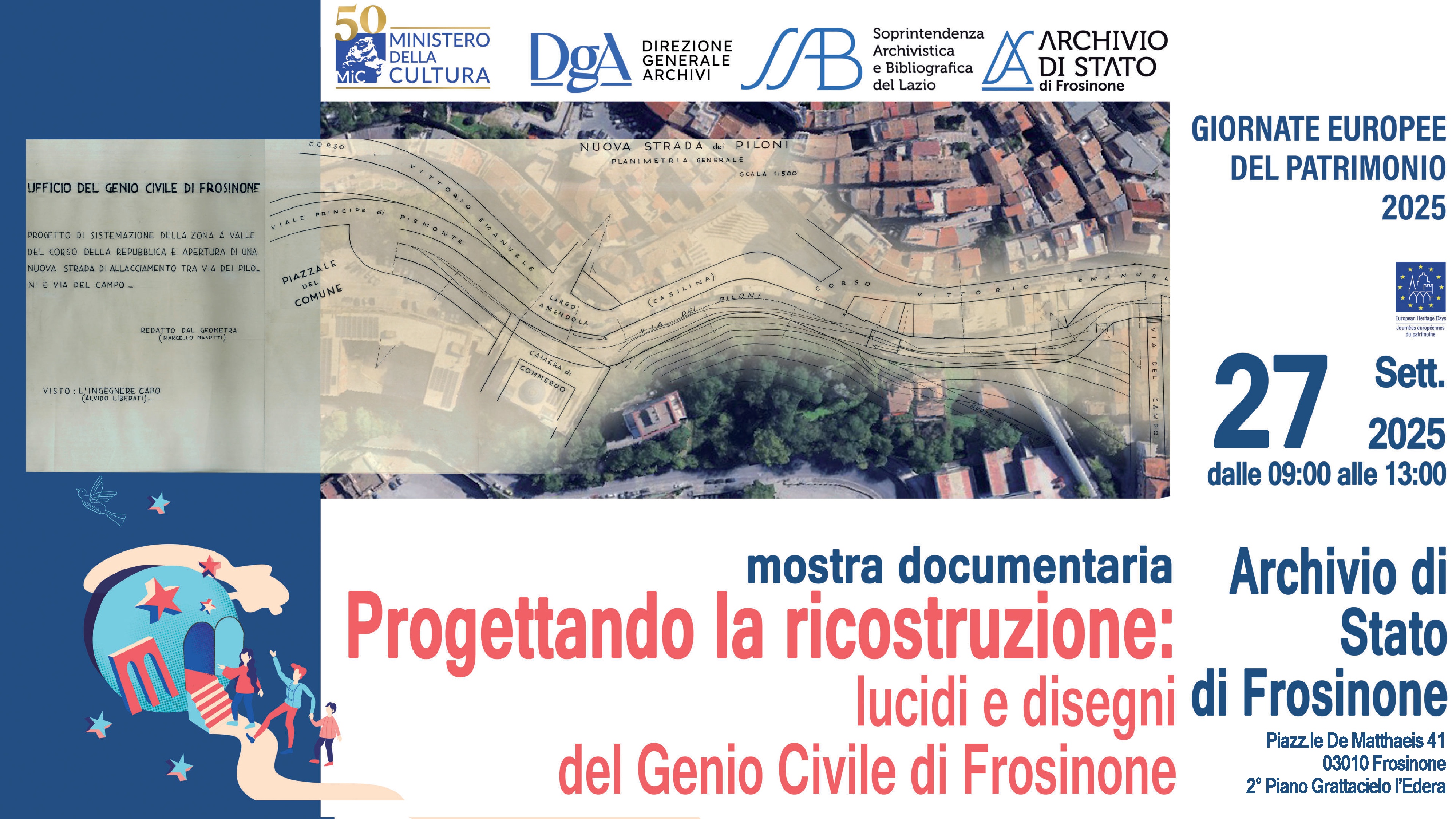 Sabato 27 settembre 2025, dalle ore 09:00 alle 13:00, in occasione delle Giornate Europee del Patrimonio (GEP), in linea con il tema "Architetture: l’arte di costruire", l’Archivio di Stato di Frosinone presenterà gli elaborati grafici estratti dal fondo del Genio Civile, comprensivo di 1450 lucidi relativi a 690 progetti, realizzati tra il 1939 e il 1960 (ad eccezione di alcuni lucidi datati anteriormente). Saranno in mostra esemplari del secondo dopoguerra riguardanti la costruzione e ricostruzione di fabbricati, alloggi per senza tetto, edifici pubblici, scuole, ospedali, luoghi religiosi, ponti, strade e planimetrie. Si potranno ammirare, fra gli altri, anche ipotesi progettuali che non videro mai la luce. Per gentile concessione dell’Archivio Storico Luce – Cinecittà, il percorso espositivo sarà arricchito dalla proiezione di due cortometraggi documentari: Cassino rinasce (1949) e Cassino anno X (1954). Un viaggio tra passato e presente, uno spunto di riflessione sul duro e faticoso percorso di rinascita. © 2021 MiC - Pubblicato il 2025-09-03 15:00:46 / Ultimo aggiornamento 2025-09-04 12:24:39