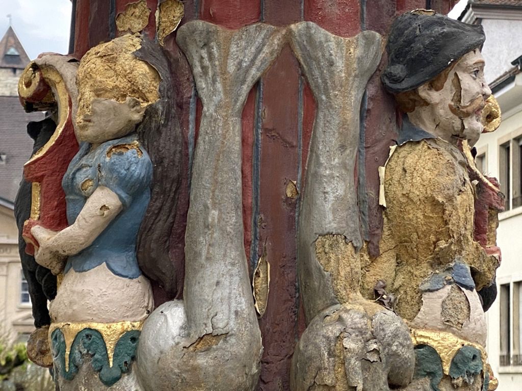 La fontaine monumentale du Suisse, datée de 1558, est l’œuvre de L. Perroud. À l’origine, elle était ornée d’un Banneret, remplacé en 1913 par la statue actuelle signée P. Heusch. En 2012, des dégradations alarmantes ont été constatées, dues principalement à l’emploi au 20e siècle de matériaux synthétiques très en vogue. Un premier projet de restauration a donc été lancé, lequel se concrétise enfin cette année, avec le début des travaux. Les restauratrices d’art présenteront les problématiques liées au sauvetage de la fontaine et les réflexions menées pour la reconstitution d’une nouvelle polychromie.