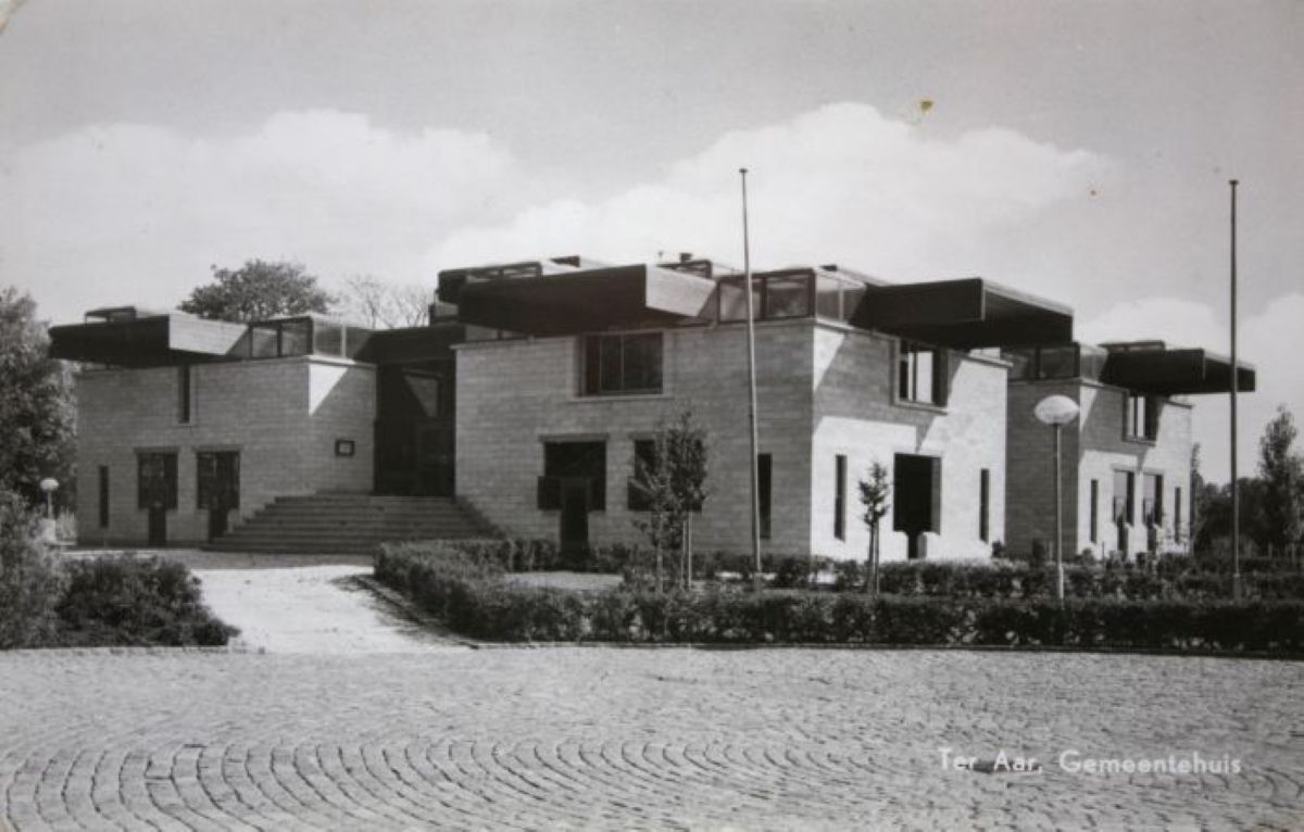 Dit raadhuis is gebouwd door architect en aannemer Joop van Stigt. Het oorspronkelijk ontwerp is gebouwd in 1968-1970 en is in 1990 ook door hem uitgebreid. Het behoud van aanwezige geografische kenmerken en historische elementen vond hij belangrijk. De oorspronkelijke hoofdmassa bestaat uit vier vierkante gemetselde ‘torens’ met daartussen geveldelen van hout en glaspuien. Hierdoor ontstaat een kruisvormige binnenruimte. Een spel van naar voren en achtergelegen geveldelen op een overwegend vierkante plattegrond. Het verschil in niveau benadrukt de hoogteverschillen die hier in het landschap aanwezig zijn. Het is ontworpen in de stijl van het structuralisme en bestaat sinds de uitbreiding feitelijk uit twee in elkaar geschoven kubussen. Binnen is o.a. de originele gedraaide trap te bezichtigen.