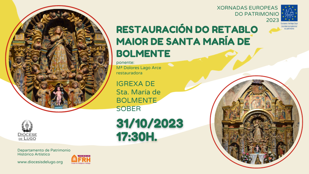 La restauradora Dña María Dolores Lago Arce explicará a los asistentes los procesos de una intervención curativa en el retablo mayor de la iglesia de Santa María de Bolmente en el Concello de Sober, parroquia de la Diócesis de Lugo.