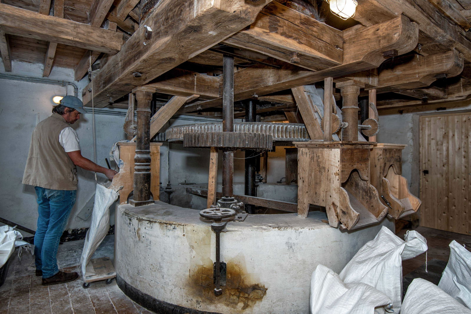 Kom alles te weten over de restauratie van de IJzerkotmolen via een werfbezoek. De oudste vermelding van een molen in Sint-Maria-Latem dateert uit 1412. De huidige molen gaat zeker terug tot 1571 en kende doorheen de eeuwen verschillende functies: ijzer- en kopermolen, oliemolen en later brouwerij. In 1792 werd er een graanmolen met twee steenkoppels opgericht, die eigendom bleef van de familie Van der Beken tot 1948. Na een periode van stilstand werd de molen in 1999 opnieuw maalvaardig gerestaureerd. De IJzerkotmolen werd in 2021 verkocht aan Jochen Delbeke & Emmanuel Meersschaut. Zij stelden aNNo architecten uit Gent aan om de molen te restaureren en herbestemmen tot molen met bakkerij, taverne, gastenkamers en woning. De molen is maalvaardig en produceert meel en bloem voor de eigen desembakkerij en particulieren. Er is tevens een kleine taverne waar men eenvoudige broodmaaltijden met streekproducten of een pannenkoek kan nuttigen. Als u na het molenbezoek een consumatie nuttigt, bedenk dan dat u zich bevindt in een - weliswaar vaak verbouwde - ruimte waar sinds de 16e eeuw opeenvolgend: 1) graan werd gemalen, 2) papier werd geschept, 3) ijzer werd gesmeed, 4) koper werd geslagen, 5) olie werd geperst, 6) bier werd gebrouwen -naast 7) het (opnieuw) malen van graan in de andere ruimte. Of hoe een landelijk gebouw een rijk en gevarieerd industrieel verleden herbergt. Voor ons was het ook zeer boeiend om in archieven te ontdekken hoe de nog gangbare benaming "IJzerkotmolen" betrekking heeft op het vroegere ijzerslaan!