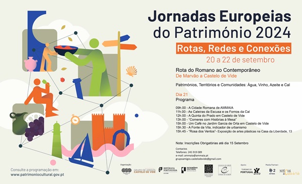 A Rota em rede e conexão tem início na cidade romana de Ammaia, designada “Do Romano ao Contemporâneo”, num percurso de 8km, a fazer em viatura e a pé, terminando o percurso na Fonte da Vila, em Castelo de Vide. Sairemos em direção às Caleiras da Escusa, uma conexão da cidade romana com o seu território, explicando os recursos locais ( calcários dolomíticos) e a criação de acessos; polo de dinamização desde a antiguidade clássica até aos nossos dias. A Quinta do Prado, a família Le Cocq em Portugal e a outra faceta dos calcários dolomíticos para a fixação das populações- a qualidade dos solos de “ terra rossa”, Aqui contaremos com testemunhos vivos de quem viveu uma vida deste recurso- os fornos da cal- A ida à adega do Prado e os comeres tradicionais serão um bom motivo para conhecer a sua história e fazer uma pausa para almoço, onde não faltarão os enchidos e os queijos do alentejo, uma sopa de peixe do rio confecionada com azeite da quinta. A Fonte da Vila e a sua história, a água como razão de permanência das comunidades, o espaço termal de outrora e os indicadores do urbanismo até aos nossos dias. Fica o convite para juntos celebrarmos o património raiano desta zona.