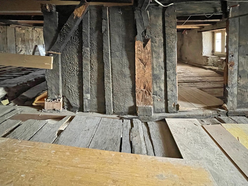 Bei der historischen Konstruktion des Tuggener Steinhauses handelt es sich um einen von Mauern ummantelten Holzständerbau, deren Instandsetzung viel Geschick und Erfahrung erforderte. Das Mauerwerk musste fachgerecht instandgesetzt und die Holzkonstruktion langfristig stabilisiert, ergänzt und teilweise rekonstruiert werden. Abgesunkene und schadhafte Tragwerksteile wurden angehoben und verstärkt. Eine gute Zusammenarbeit zwischen Zimmerleuten und Tragwerksplanenden war erforderlich.