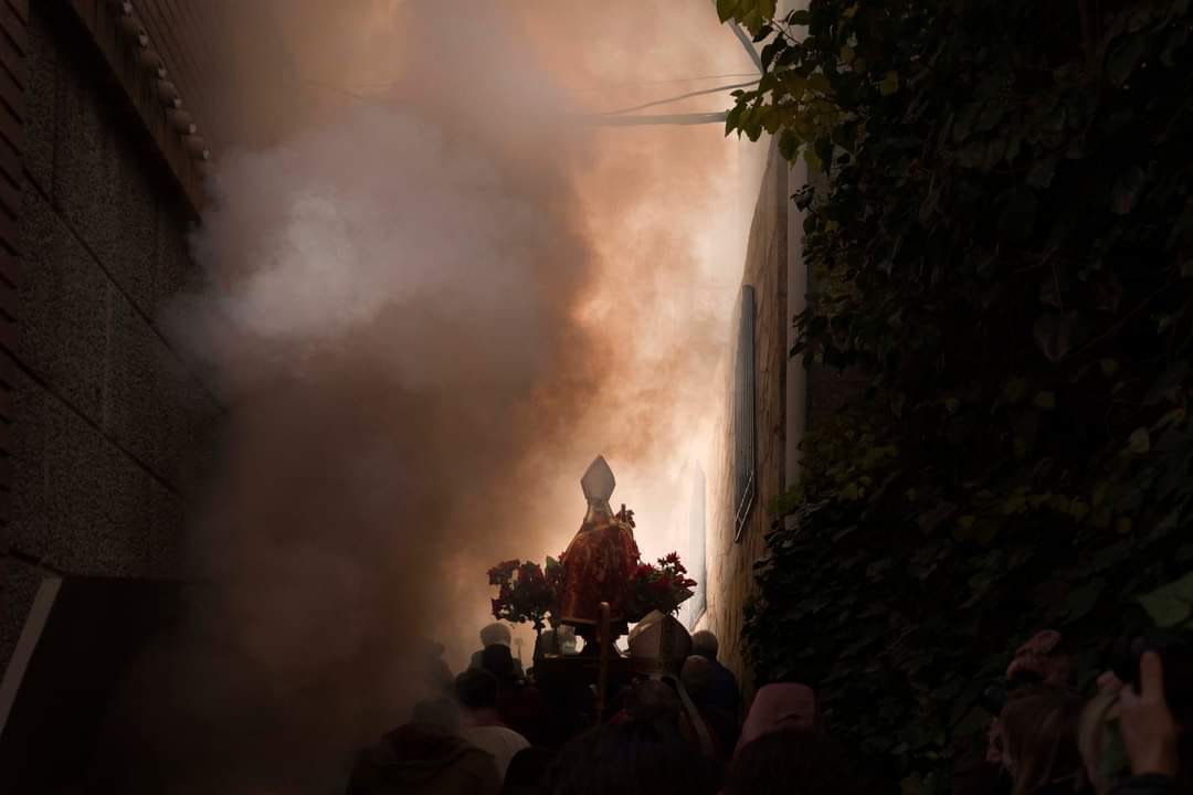 Durante un rato la imagen del santo va recorriendo las calles y las hogueras junto a los vecinos del pueblo y a los curiosos visitantes que se han acercado hasta Arnedillo.
