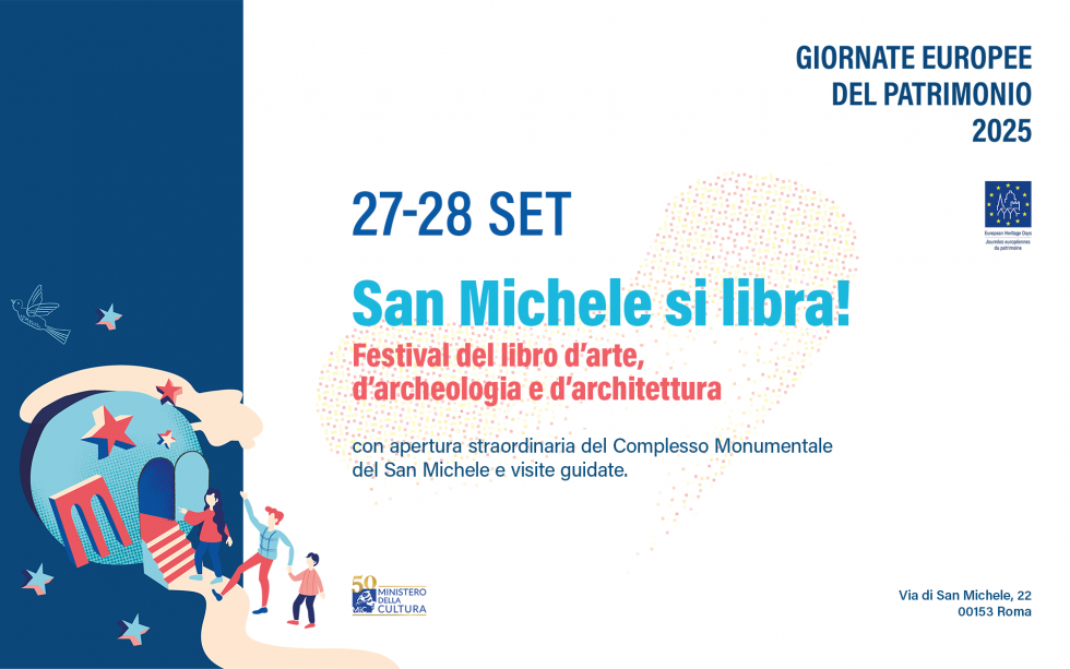 Sabato 27 e domenica 28 settembre 2025, in occasione delle GEP – Giornate Europee del Patrimonio, il Complesso Monumentale del San Michele a Ripa Grande apre le sue porte al pubblico con la manifestazione culturale “San Michele si libra! Festival del libro d’arte, d’archeologia e d’architettura” (Libri, Conferenze, Artigianato Artistico, Concerti). L’iniziativa si articola in: • un’area espositiva, lungo il porticato del Cortile degli Aranci, con libri di settore e prodotti di artigianato artistico a richiamare l’antica vocazione del San Michele come scrigno dell’arte e dell’artigianato; • conferenze e presentazioni di libri declinati sul tema delle GEP “Architetture. L’arte di costruire”. Per il pubblico un motivo di incontro con editori, scrittori, relatori, storici dell’arte, archeologi, architetti in un contesto di rado visitabile, ma ricco di bellezza e di storie, svelate per l’occasione da visite guidate gratuite a cura del personale del MiC che si svolgeranno dalle ore 18,30, sabato 27 settembre, con prenotazione obbligatoria. Per concludere, domenica 28 settembre, all’esposizione e alle presentazioni di libri si aggiunge un concerto dedicato a San Michele, nella Chiesa Grande, per violino e pianoforte. © 2021 MiC - Pubblicato il 2025-09-23 20:24:24 / Ultimo aggiornamento 2025-09-24 07:30:46