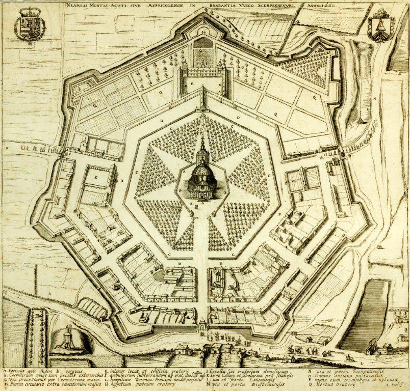 Scherpenheuvel is veel meer dan een bedevaartsoord: het is een geometrisch ontworpen vestingstad, gebouwd in opdracht van de aartshertogen Albrecht en Isabella tijdens de Contrareformatie. De stad kreeg een zevenhoekige structuur, waarin religieuze symboliek en militaire strategie samenvloeiden tot een spiritueel bolwerk. Elke bastion en stadspoort verwijst naar mariale motieven zoals de “Sterke Stad” en de “Besloten Hof”, metaforen voor Maria’s zuiverheid en bescherming. De vestingwerken, ontworpen door ingenieur Sylvain Boullin, dienden niet alleen als verdediging tegen protestantse invloeden, maar ook als visuele proclamatie van het katholieke geloof. De basiliek, centraal in het radiaal-concentrische stratenplan, werd het hart van deze heilige stad, gedragen door een rijke iconografie en barokke pracht. Tijdens de rondleiding ontdek je hoe wiskunde, geloof en macht samenkwamen in een stad die als een hemels leger in slagorde werd opgevat. Scherpenheuvel is een uniek voorbeeld van hoe architectuur een religieuze boodschap kan versterken en verankeren in het landschap.