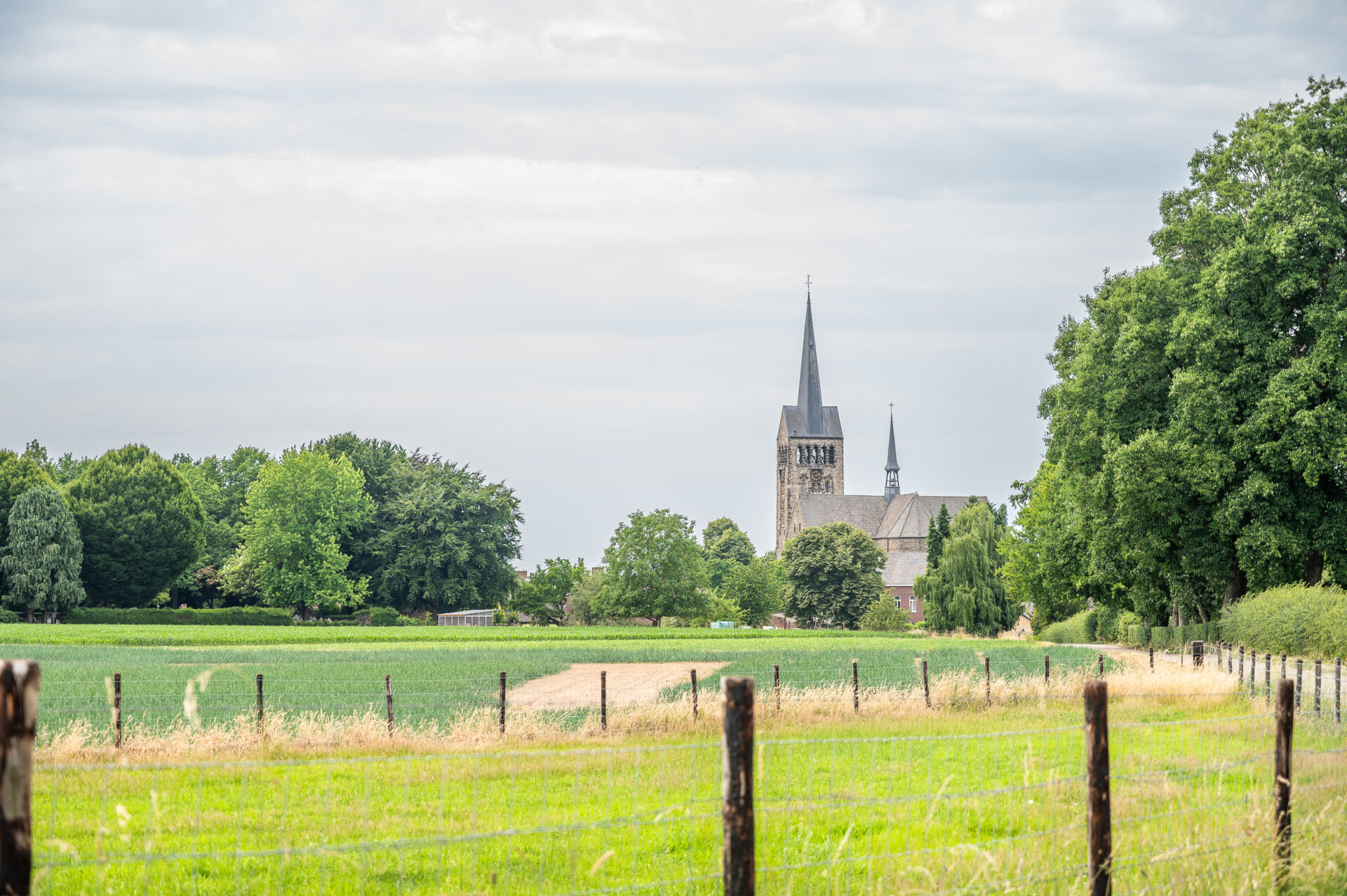 Aan de hoofdstraat van Schimmert, op de route van Klein Haasdal naar Spaubeek, staat de imposante Sint-Remigiuskerk. Dit rijksmonument, gewijd aan Remigius van Reims, vormt samen met de achtergelegen pastorie een markant ensemble in het dorpsbeeld. De huidige kerk werd gebouwd tussen 1924 en 1926, naar ontwerp van architecten Joseph Cuypers en Pierre Cuypers jr. Opvallend is de hoge westtoren met ingesnoerde spits, die met zijn 65 meter hoogte ver boven het dorp uittorent. Het gebouw bestaat uit een driebeukig schip met zaagdak, een transept met kapellen, een vieringtoren, een koor en apsis. Aan de zuidzijde bevindt zich de sacristie. De kerk werd opgetrokken in historiserende stijl, met neoromaanse en neogotische invloeden. Materialen als zandsteen, mergel, graniet, hout en koper geven het gebouw karakter en duurzaamheid. Bijzonder is dat de nieuwe kerk over de oude waterstaatskerk uit 1832 heen werd gebouwd, zodat de erediensten konden doorgaan tijdens de bouw. Na de consecratie in 1932 door de in Schimmert geboren bisschop Lemmens, kende de kerk een bewogen geschiedenis. Tijdens de Tweede Wereldoorlog raakte het gebouw beschadigd door bommen, en in de decennia daarna volgden meerdere restauraties. De toren werd hersteld in 1956 en opnieuw in 2006, en recent zijn de glas-in-loodramen en daken gerenoveerd. Bekijk het volledige programma hier!