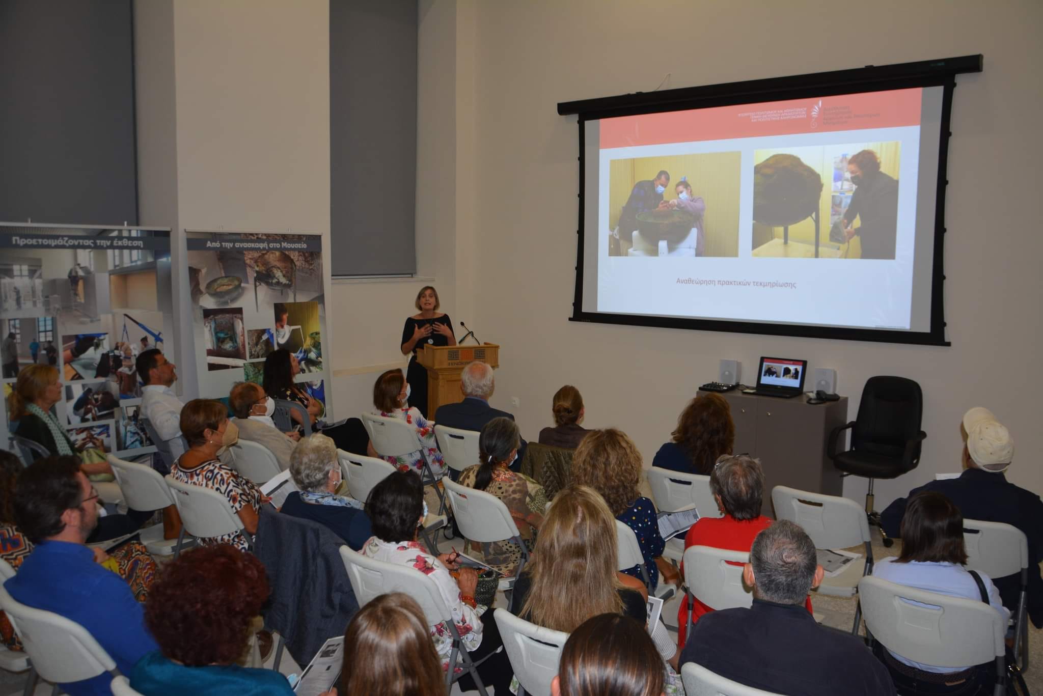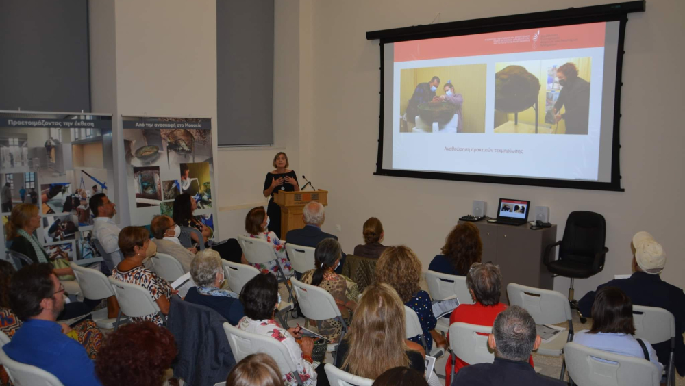 Πραγματοποίηση επιστημονικής ημερίδας με τη συμμετοχή αρχαιολόγων και συντηρητών αρχαιοτήτων και έργων τέχνης, σχετικά με το σημαντικότατο εύρημα δύο χάλκινων ταφικών λεβήτων της Πρωτογεωμετρικής περιόδου, οι οποίοι διατηρούν σπάνια υφάσματα και αποτελούν ένα από τα εξέχοντα εκθέματα του Μουσείου. Στο πλαίσιο της ημερίδας θα γίνει παρουσίαση του ευρήματος, από την ανασκαφή και την απαιτητική διαδικασία συντήρησης μέχρι την προετοιμασία και μεταφορά τους προς έκθεση. Συνεργαζόμενος φορέας: Διεύθυνση Συντήρησης Αρχαίων και Νεώτερων Μνημείων/ΥΠΠΟΑ