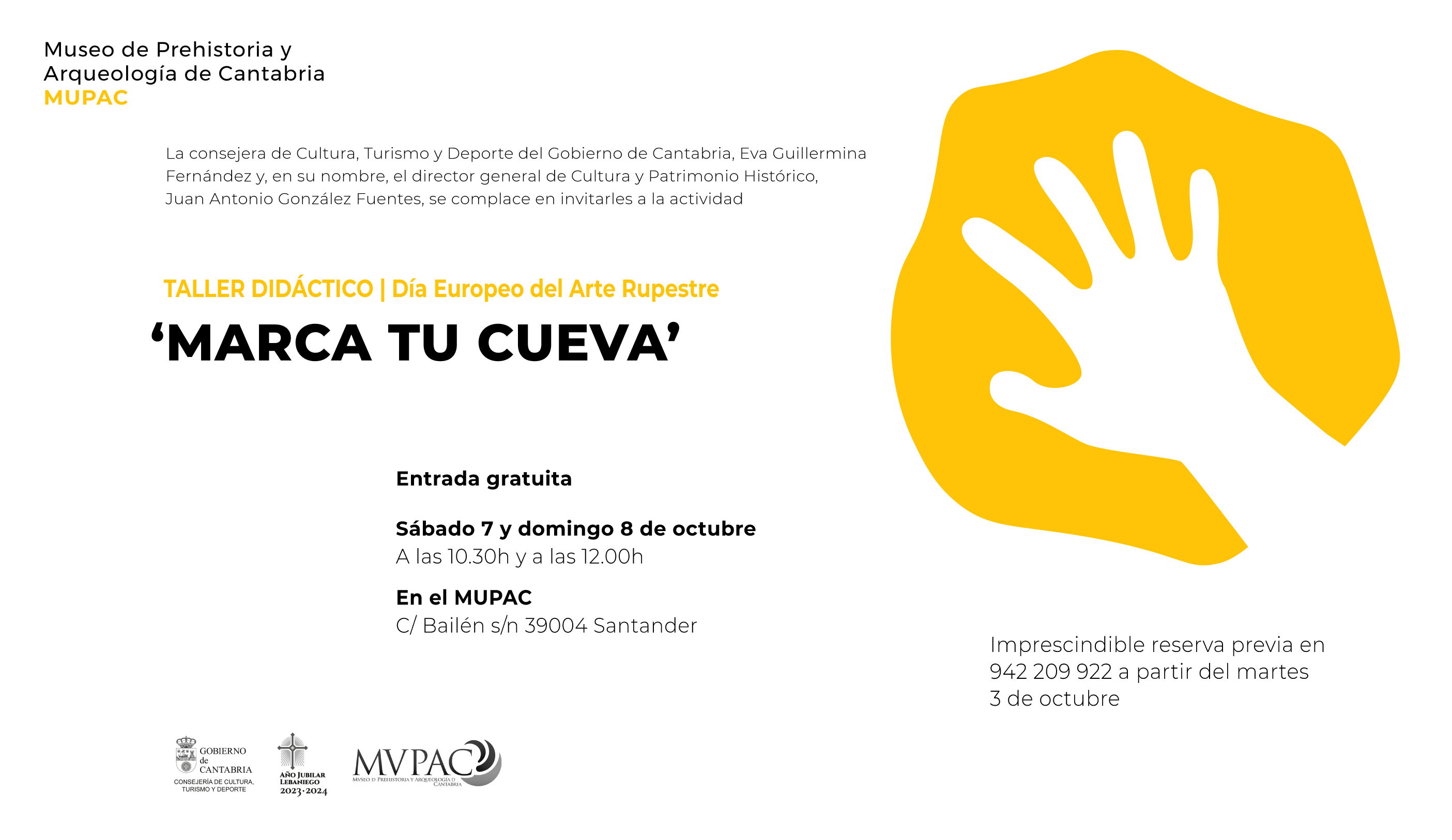 Con motivo de la celebración del Día Europeo del Arte Rupestre, el MUPAC organiza un taller didáctico de 90 minutos de duración titulado "MARCA TU CUEVA" donde grandes y pequeños podrán experimentar con los materiales y las técnicas de los primeros artistas de las grutas cantábricas.