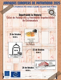 Este taller acercará a los participantes a la lectura e interpretación de manuscritos históricos relacionados con la arquitectura y el urbanismo en Extremadura. A partir de una introducción práctica a la paleografía, se trabajará con documentos originales custodiados en los archivos de la región, lo que permitirá descubrir técnicas constructivas tradicionales, oficios vinculados y transformaciones urbanas a lo largo del tiempo. Una experiencia educativa que conecta pasado y presente, poniendo en valor tanto el patrimonio documental como el arquitectónico.