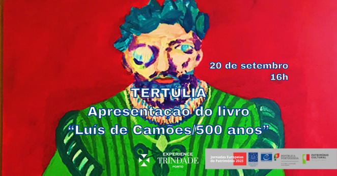 Tertúlia especial na Experience Trindade – Porto 20 de setembro 16h00 No âmbito da exposição “Os Lusíadas na Figuração de Levi Guerra”, convidamo-lo para a apresentação do livro “Luís de Camões / 500 anos”, da autoria do Dr. Francisco Marques. A sessão será conduzida pelo Eng.º Ricardo Guimarães e é uma oportunidade única para celebrar a vida e legado de Camões num ambiente de partilha e reflexão. Entrada livre, sujeita à lotação do espaço. Junte-se a nós nesta homenagem a um dos maiores símbolos da literatura portuguesa.