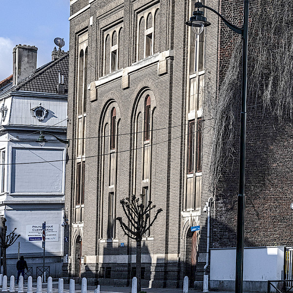 Formerly concentrated in the Cureghem district of Anderlecht, as well as in Schaerbeek, the Jewish community felt the need to build a larger synagogue than the one in use since 1910 near Les Marolles. After the purchase of a 500 m² plot in 1926, the plans for the future building were entrusted to Antwerp Jewish architect Joseph De Lange, already responsible for the construction of the Ostend synagogue and two others in Antwerp. Work began in 1928, and the white brick and stone building was designed in an Art Deco style inspired by Romanesque architecture. The high walls are punctuated with lesenes, and the interior features granite-covered floors. The synagogue was finally inaugurated on 6 April 1933. Today, it welcomes members of the Brussels Orthodox Jewish Community, who gather here to celebrate the major festivals of the Jewish calendar. Photographs are allowed. However, it is forbidden to photograph the security systems and access routes inside.