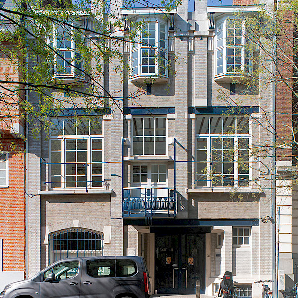 Antoine Pompe’s first achievement was this clinic for orthopaedic specialist Dr Van Neck. We are in 1910, as evidenced by the date on the facade, and yet the style already foreshadows the architect’s interwar creations. Almost Art Deco, even modernist according to some, this facade of light-coloured Denain bricks and white Euville stone is surprisingly modern. Although the interior was radically altered in 1961, the building has managed to retain its unity, even though the glass panels in the first-floor windows have been replaced by conventional metal frames. It still features three bays underlined by monumental pilasters, and marked on the last storey by small trapezoidal alcoves on bases. A recent restoration campaign has restored the ensemble to its former glory. Since 1975, the building has housed the Institut de Rythmique Jaques-Dalcroze. (CL 07/12/1981 - 07/05/2015) Guided tours on Saturday at 2.00 pm (FR) and 4.00 pm (FR) (duration 1hr, maximum 20 people per departure). Self-guided tour on Sunday from 10:00 to 16:00. Guided tours will be given by one of the architects responsible for the renovation work, and artistic performances (music and movement) will be led by students from the Institute. The work of Antoine Pompe and the Jaques-Dalcroze method were developed during the same period of cultural vitality, research into personal well-being, and industrial innovation. Rhythmics was part of the active new education movement (Decroly, Freinet, etc.), spread among the creators of modern dance and prefigured a creative, multi-sensory musical education that is still alive and well today. In collaboration with the Institut Dalcroze and Architectures Parallèles.