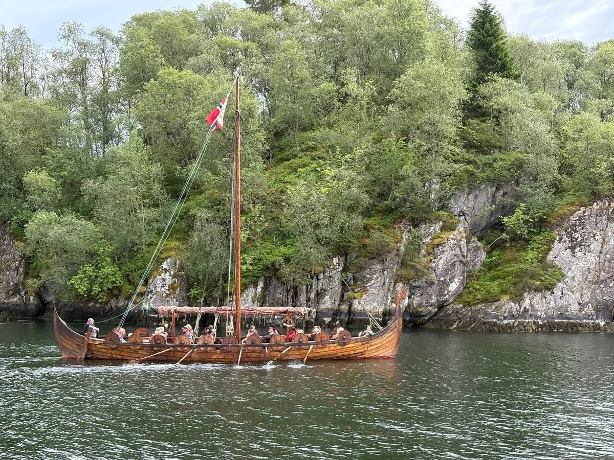 Vikinglaget inviterer barne familier til et lite tokt på fjorden. Dere må hjelpe oss å være med å ro vikingskipet. Mannskapet er ekte vikinger og vi har selvfølgelig på vikingklær. Varighet ca 30 minutters. Vikingskipet Haakon Haakonson er en kopi av Gokstadskipet skipet som er funnet i en viking grav på gården Gokstadskipet i Vestfold. Orginalen er utstilt på viking museet i Oslo. Alle deltagere må ha på redningsvest det får dere låne av oss. Velkommen.