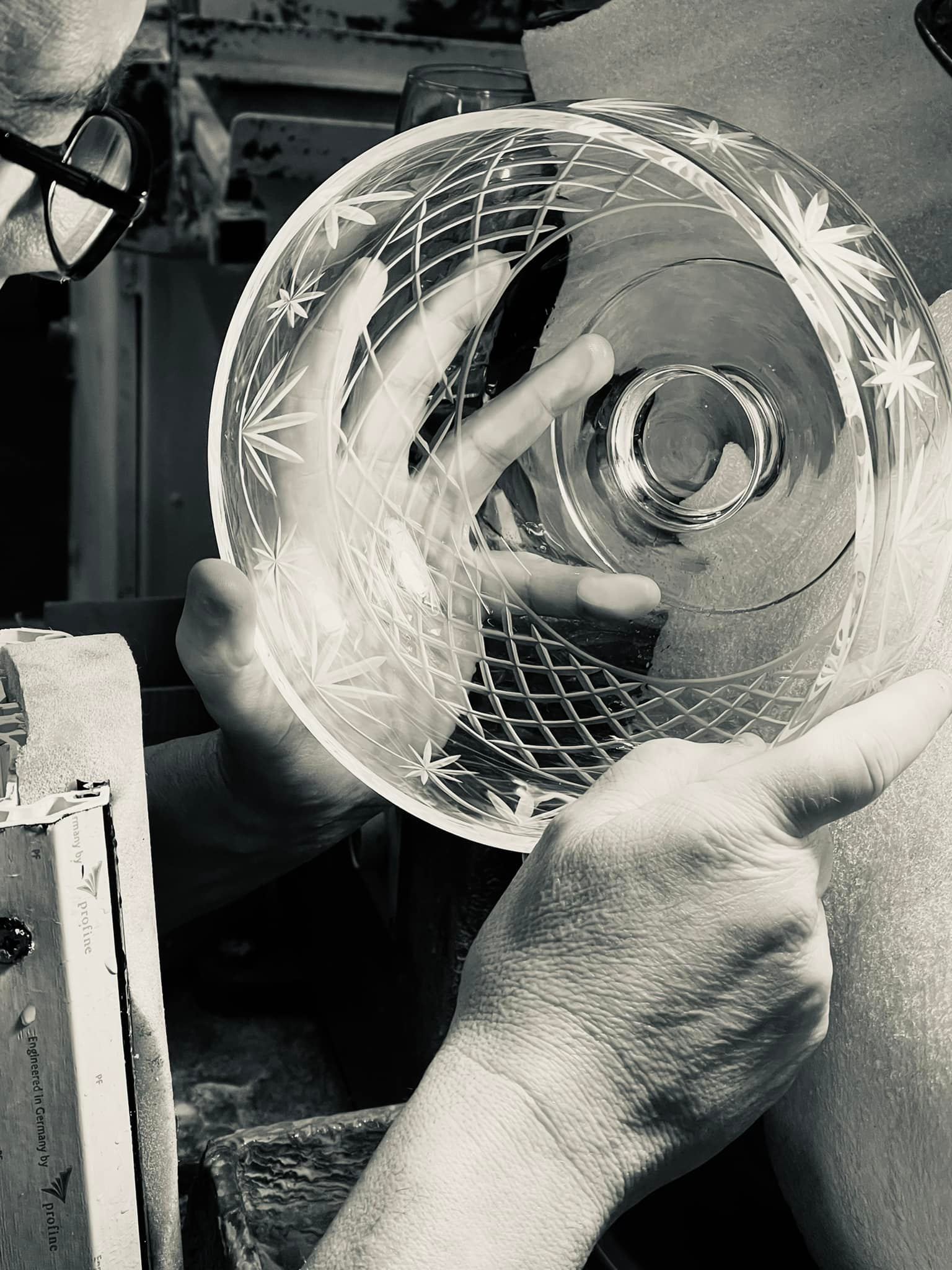 We are excited to be able to offer the Tyrone Glass Cutting Experience to the public in our new studio in Dungannon. These workshops allow you to come along and get an insight into the centuries of work that has gone into glassmaking in Tyrone. You will then be guided through the process of cutting your own glass with one of our expert master craftsmen.