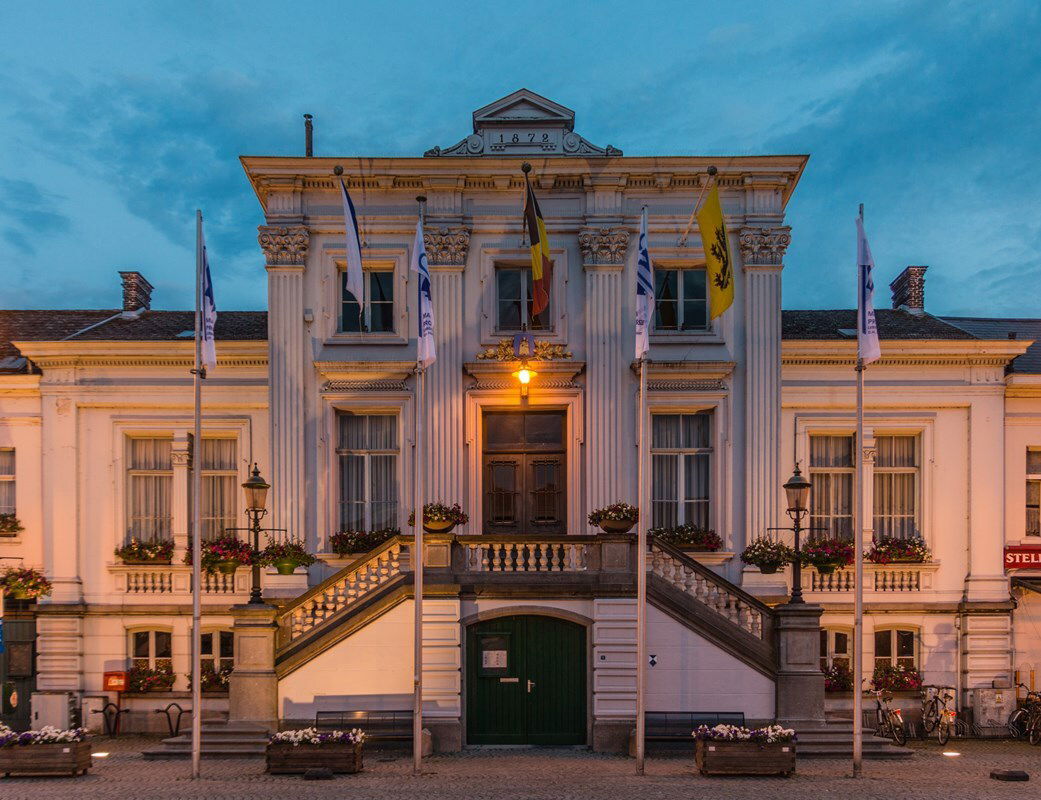 - We wandelen daarna via de tuin van galerie de fontein, door huis Blanckaert naar de moderne raadzaal in het Sociaal Huis. Tot slot wandelen we terug en nemen we een kijkje in de huidige raadzaal in de bovenzaal van ‘t Toreken.