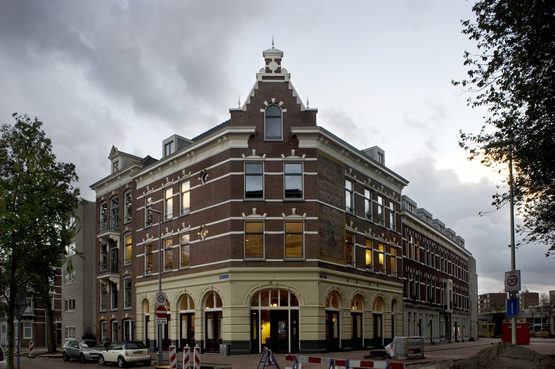 Het Verhalenhuis Belvédère en de Rotterdamse wijk Katendrecht waar dit pand staat kennen een roemruchte geschiedenis: In 1884 wordt met de bouw van het blok gestart en in 1894 is het hoekpand ingevuld: het heet ‘Bellevue’ en beslaat 178 m². 1895: het idyllische, groene polderdorp Katendrecht, waar vooraanstaande Rotterdamse families hun prachtige buitenverblijven hadden, wordt geannexeerd door de gemeente Rotterdam voor uitbreiding van haar haven; de Maashaven en de Rijnhaven worden gegraven en Katendrecht wordt een schiereiland met bijnaam ‘De Kaap’. 1911: een grote zeeliedenstaking in Rotterdam en Amsterdam; om de staking te breken worden 500 Chinezen uit Engeland gehaald. De Chinezen werken hard en zijn goedkoop, er worden steeds meer Chinezen gehaald die voorts hun eigen boardinghouses, opiumkits, toko’s, wasserijen, speel- en eethuizen beginnen. Katendrecht wordt het eerste Chinatown van Europa. 1915: ‘café-restaurant Belvédère’ verschijnt op de gevel (in plaats van Bellevue) eigenaar is Wouter den Ouden, getrouwd met Alida M. de Gruyl. Samen dreven zij meerdere café’s op Katendrecht, maar Belvédère was de eerste. De jaren ’30: harmoniefanfares en draaiorgels trekken de Kaap op en bovenal wordt dit dé jazztijd. Belvédère wordt de trots van de Kaap: nationale grootheden treden op tussen de kolommen van dancing Belvédère. Kid Dynamite, Teddy Cotton, Boy Edgar… De naam is Negropalace Belvédère van eigenaar Daan Troost. Jazz & oorlog: tijdens de oorlog is jazz verboden, maar Katendrecht is een soort vrijstaat, hier mogen de Duitsers niet komen. De Kapenezen hebben een eigen waarschuwingssysteem. Als de Duitsers toch naderen, fietst er iemand snel naar Belvédère, daar worden de schilderijen omgedraaid en komt Hilter tevoorschijn, en spelen de muzikanten Duitse volksliederen. Zo gaat dit een tijd lang goed, tot in 1943 het te laat wordt opgemerkt, en Teddy Cotton met de overvalwagen wordt afgevoerd. Na de oorlog wordt het hoekpand de Kit Cat Cotton Club, daarna Bioscoop de Maas, en er zijn goochelshows voor kinderen. Het pand was enkele jaren zelfs een worstelarena; een oudere Kapenees vertelde ons over zijn worstelwedstrijden op matten tussen de kolommen van Belvédère. De verhalen over deze periode op Katendrecht zijn legendarisch, over De Meisjes, over de grote diversiteit aan café’s, winkels en ondernemers, over de clubhuizen… Daarna wordt het hoekpand “Bazoukia nachtclub” en vervolgens “Xenos bar/nachtclub” door twee Griekse eigenaren. Tijdens deze periode zijn op maandagochtend de serviesscherven voor de deur te vinden, waarop die nacht de Sirtaki is gedanst. Bewoners bevechten de plek om er een museum over Katendrecht van te maken, 17 jaar lang wordt dit gedraaid met vele vrijwilligers (stichting Expositie Katendrecht). Het Rotterdams Dagblad schrijft “In alle delen van de wereld is de wijk gekend. Daarom is het zo gek nog niet dat de bewoners een eigen museum willen inrichten. De geschiedenis van de wijk is met die van geen enkele andere in Rotterdam te vergelijken.” Na een periode van leegstand wordt er in 2012 een stichting in het leven geroepen die het pand koopt. En zo keert Belvédère, Verhalenhuis Rotterdam terug. Het eerste huis voor immaterieel erfgoed in Nederland. Bezoekers stromen binnen, Belvédère is weer open! Kijk voor het volledige programma in dit monument, de juiste openingstijden en het reserveren van activiteiten en tours op www.omdrotterdam.nl.