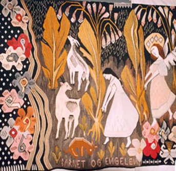 Ein festdag for vevtradisjon Det blir utstilling av lokalt vevarbeid, og foredrag om vev og vevtradisjonar av konservator Aud Ross Solberg, tidlegare leiar av museet på Kaupanger. bilet er «Barnet og engelen», vove av Kjestina Hauglum Vangsnes (f. 1867)