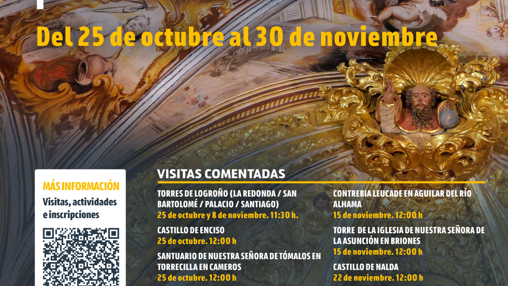El Gobierno de la Rioja se suma a las Jornadas Europeas de Patrimonio 2025 “Patrimonio arquitectónico: ventanas al pasado, puertas al futuro” con visitas guiadas por diferentes actuaciones que se han llevado a cabo en el Patrimonio arquitectónico riojano, explicadas por los arquitectos y restauradores responsables de las mismas y ofreciendo un rico programa de actividades que muestran a la ciudadanía la identidad y memoria de los lugares a través de la relación entre los edificios y su comunidad.