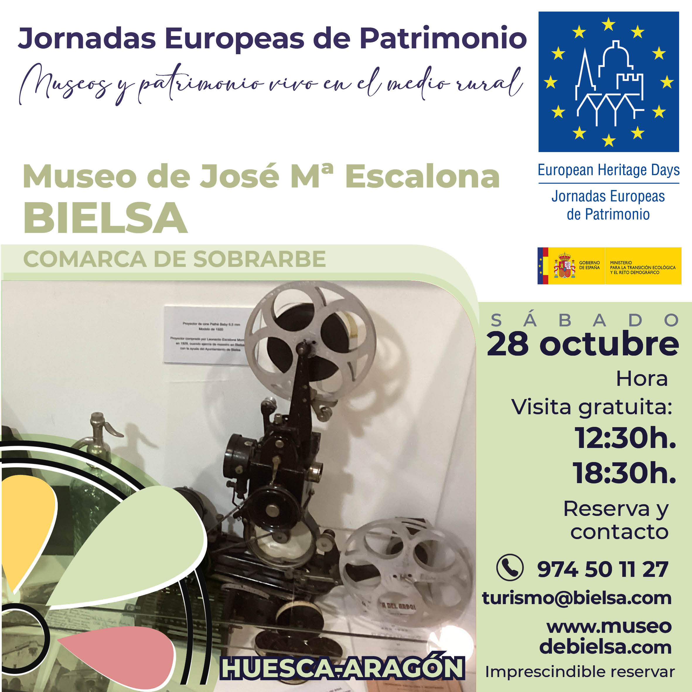 El museo de Bielsa expone un interesante fondo fotográfico y una colección de objetos que nos hablan del medio natural, de los modos de vida, y de la historia de este municipio. La sección sobre la Guerra Civil rememora los episodios de la Bolsa de Bielsa a través de un audiovisual y de objetos usados durante la contienda, expuestos como recuerdo de esa parte de nuestra historia reciente. Un montaje de luz y sonido, nos sumerge en el bullicio festivo del Carnaval de Bielsa, poblado de personajes cargados de simbolismo y tradición. Visita guiada gratuita. Fecha: 28- 10- 2023 Horario. 12:30 h y 18:30 h Aforo limitado imprescindible reservar en el teléfono 974 501127. The Bielsa museum exhibits an interesting photographic collection and a collection of objects that tell us about the natural environment, the ways of life, and the history of this municipality. The section on the Civil War recalls the episodes of the Bielsa Stock Exchange through an audiovisual and objects used during the war, exhibited as a souvenir of that part of our recent history. A light and sound montage immerses us in the festive bustle of the Bielsa Carnival, populated by characters full of symbolism and tradition. Free guided tour. Date: 10-28-2023 Schedule. 12:30 p.m. and 6:30 p.m. Limited capacity, reservation is essential by calling 974 501127.