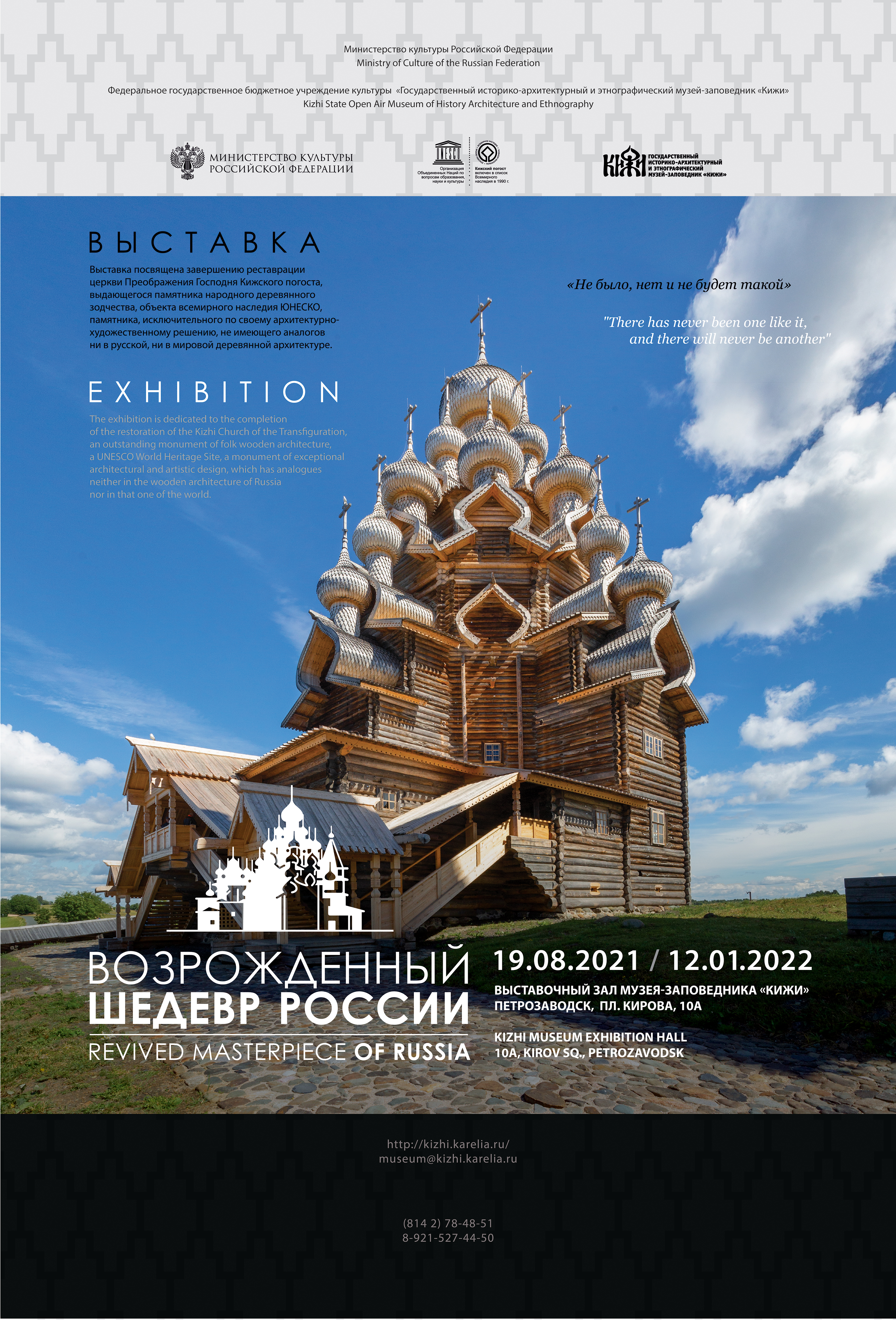 Новая выставка «Возрожденный шедевр России» об уникальной реставрации многоглавой церкви Преображения Господня на острове Кижи доступна для всех желающих.