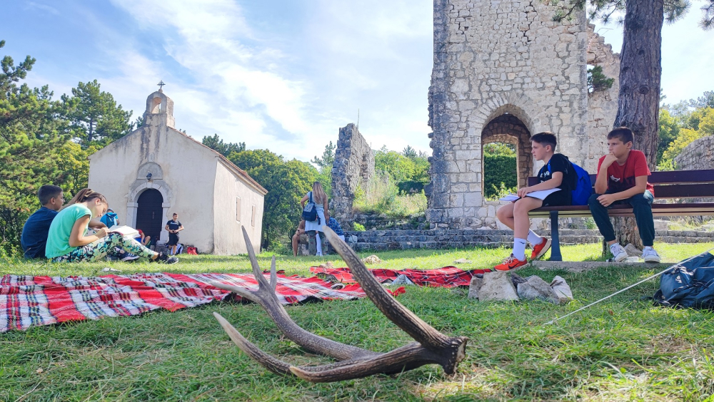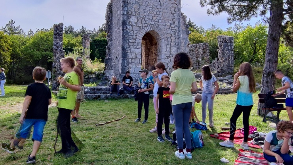 The Frankopan Heritage Trail project consists of a series of intensive workshops aimed at introducing elementary students to the heritage of the medieval town of Hreljin. Through research, educative games and archaeology, children learn about the valuable heritage of this area and participate in the creation of an imaginative educational promenade.