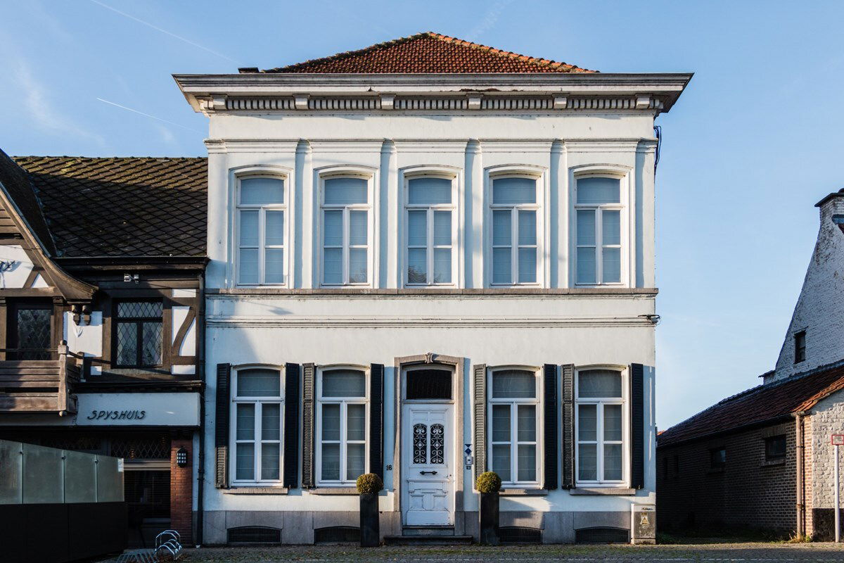 - Het Burgerhuis werd opgericht in het laatste kwart van de 19de eeuw. Men kan genieten van de kenmerkende bepleisterde lijstgevel verrijkt met hardstenen elementen zoals een accentuerende deuromlijsting, terwijl de zijgevel zijn typerende zwarte beraping bewaart.