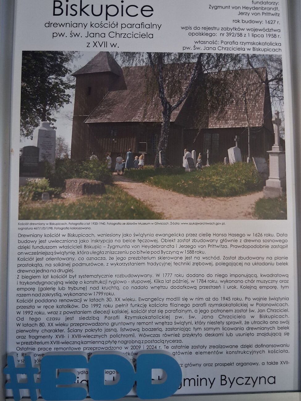 Zapraszamy na wyjątkową wystawę plenerową, która ożywi historię! Zobacz, jak wyglądały drewniane kościoły Gminy Byczyna – te, które przetrwały wieki, i te, które zniknęły w odmętach czasu. Wystawa plenerowa opisująca przedstawiająca istniejące i nieistniejące drewniane kościoły Szlaku Drewnianych Kościołów znajdujących się na terenie Gminy Byczyna. Kościoły drewniane w: Biskupicach, Ciecierzynie, Jakubowicach, Gołkowicach, Kostowie, Miechowej, Nasalach, Proślicach, Polanowicach. Wystawa prezentuje historię, dzieje i koloryzowane zdjęcia tych kościołów z różnego czasu.