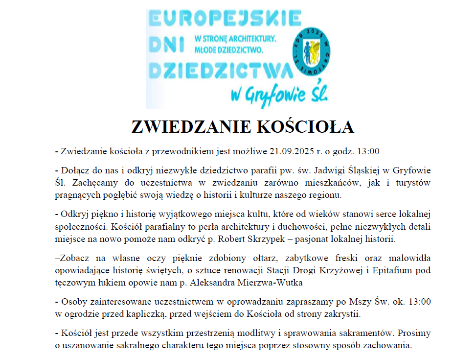 Zwiedzanie Kościoła pw. św. Jadwigi w Gryfowie Śląskim Organizatorzy