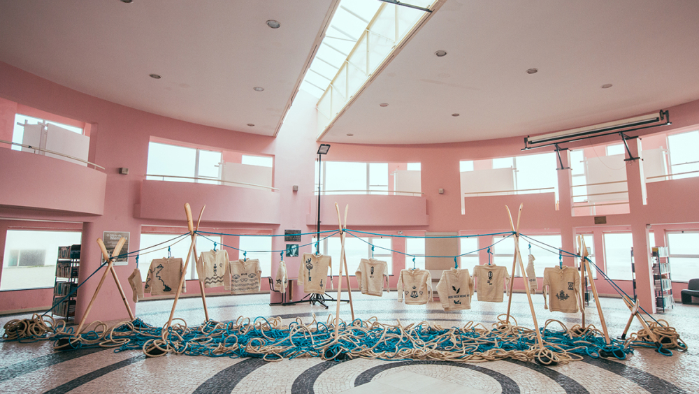 This story reveal the European dimension of the local heritage. The Penelopes is an artistic approach to the iconic handy-knitted fisherman sweater camisola poveira made by women of Póvoa de Varzim (a northern seaside town of Portugal) in the last 150 years or more. The Penelopes brings together original literary texts, starting from the figure of Penelope and the heritage of the fishing community of Póvoa de Varzim, in order to pay homage to the Feminine. This collaborative artistic project developed in 2021 put in dialogue literature and the art of embroidery, exhibit in a contemporary installation created with the traditional camisola poveira. The embroidery used in the artistic installation combines traditional symbols of the typical pattern of Póvoa de Varzim with images taken from the original texts written for this project. The Penelopes carefully approach the cultural landscape and look back inside the house, at the many fishing nets thrown at the path, at the artifacts of wood spread out on the beach.