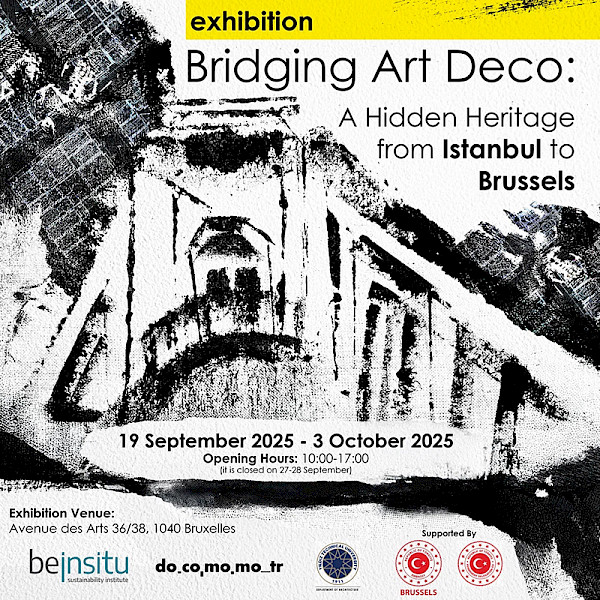 Bridging Art Deco: A Hidden Heritage from Istanbul to Brussels — As a Part of the European Heritage Days in Türkiye and Belgium The exhibition “Bridging Art Deco: A Hidden Heritage from Istanbul to Brussels” will highlight, in the context of European Heritage Days, Istanbul’s Art Deco legacy, revealing a unique interpretation of this global movement. It is organized by partnership of Beinsitu Sustainability Institute, DOCOMOMO_Türkiye Working Party, and Yıldız Technical University and associated with the Brussels 2025 theme of Art Deco. The exhibition will take place in Brussels with the support of the Permanent Delegation of Türkiye to the European Union and the Turkish Embassy in Bruxelles between September 19th and October 3rd 2025 . Although the origins of the Art Deco movement can be traced back to Paris, it was widely adopted and applied in many European cities, especially in Brussels. During the same period, Art Deco influence was also seen in İstanbul with unique examples shaped by local culture and dynamics. In Istanbul, Art Deco appears not only as an imported style, but also as an aesthetic adapted to the local architectural memory, intertwined with modernisation, industrialisation and the search for European identity. While Istanbul is often associated with Ottoman and Byzantine heritage, the city’s modernist period including Art Deco left a remarkable modern legacy. It made a lasting mark by blending European influences with local aesthetics and materials. The exhibition will showcase how Istanbul interpreted and embraced Art Deco in a distinctive manner, reflected not only in architecture but also in lifestyle. The buildings, its details and its inventory information will be conveyed through photographs, drawings, texts, collages and creative interpretations. By drawing a cultural bridge between Brussels, the EU capital, and Istanbul, the capital of three empires, the exhibition will contribute to a broader understanding of Art Deco as a dynamic and globally connected movement, inviting audiences to explore its diverse manifestations across different geographies. The exhibition’s language is English. Two guided tours will take place on September 20th , Saturday at 13:00 and 15:00, led by the exhibition’s curators: Ebru Omay Polat, Co-Chair of DOCOMOMO_Türkiye Working Party ; Selin Yıldız , Yıldız Technical University and Asli Ingin, Senior Project Director at the Beinsitu Sustainability Institute. The tours will introduce participants to Istanbul’s Art Deco heritage while offering insights into the research and creative processes behind the exhibition. Photography is only permitted in the exhibition space and is not allowed in the rest of the building.