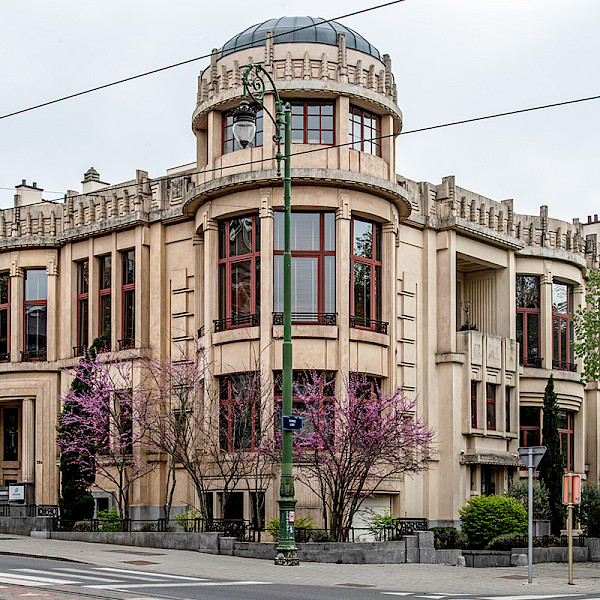 1928 marked a high point in the career of Antoine Courtens, who had to take on two major projects: the Palais de la Folle Chanson, not far from the Abbaye de la Cambre, and the Hôtel Haerens. To best fit the plot, the architect designed a corner building with a rotunda tower at the connection point; this tower acts as a sort of junction between the lower part, a tenement house overlooking Avenue de la Ramée, and the upper part, a city dwelling adapted to society life. The resolutely geometric shapes, white facades and elegantly understated stylised decor place the building in the purest Art Deco style. Courtens’ way of conceiving things was undoubtedly inspired by Victor Horta, whom he trained with. It also borrows certain elements from Frank Lloyd Wright, such as the architectural frieze concealing the flat roof. Particular attention was paid to the interior design, especially the large entrance hall, which was finished in high-quality marble. The floor features alternating triangular elements in black marble and veined marble, the latter also used for the base and treads of the staircase (CL 08/08/1988). In collaboration with Arkadia (FR) and Bruxelles Bavard (NL/EN). Photographs are not permitted.